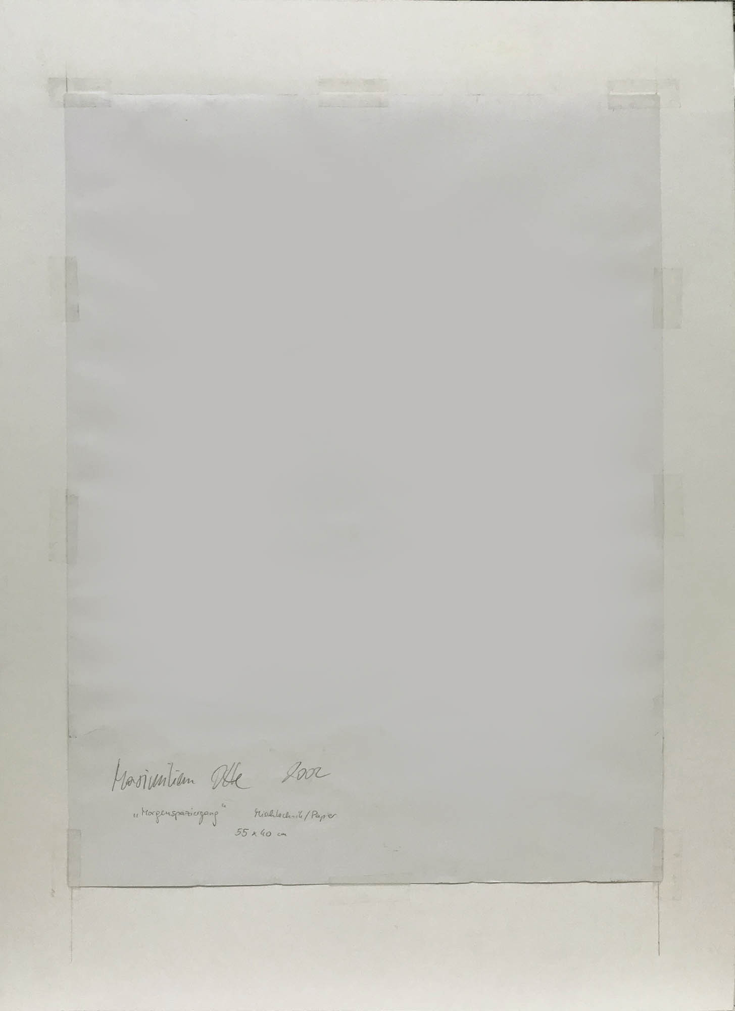 - verso: signed and dated: "Maximilian Otte 2002"; Inscribed: "Morgenspaziergang, Mischtechnik/Papier, 55 x 40 cm"