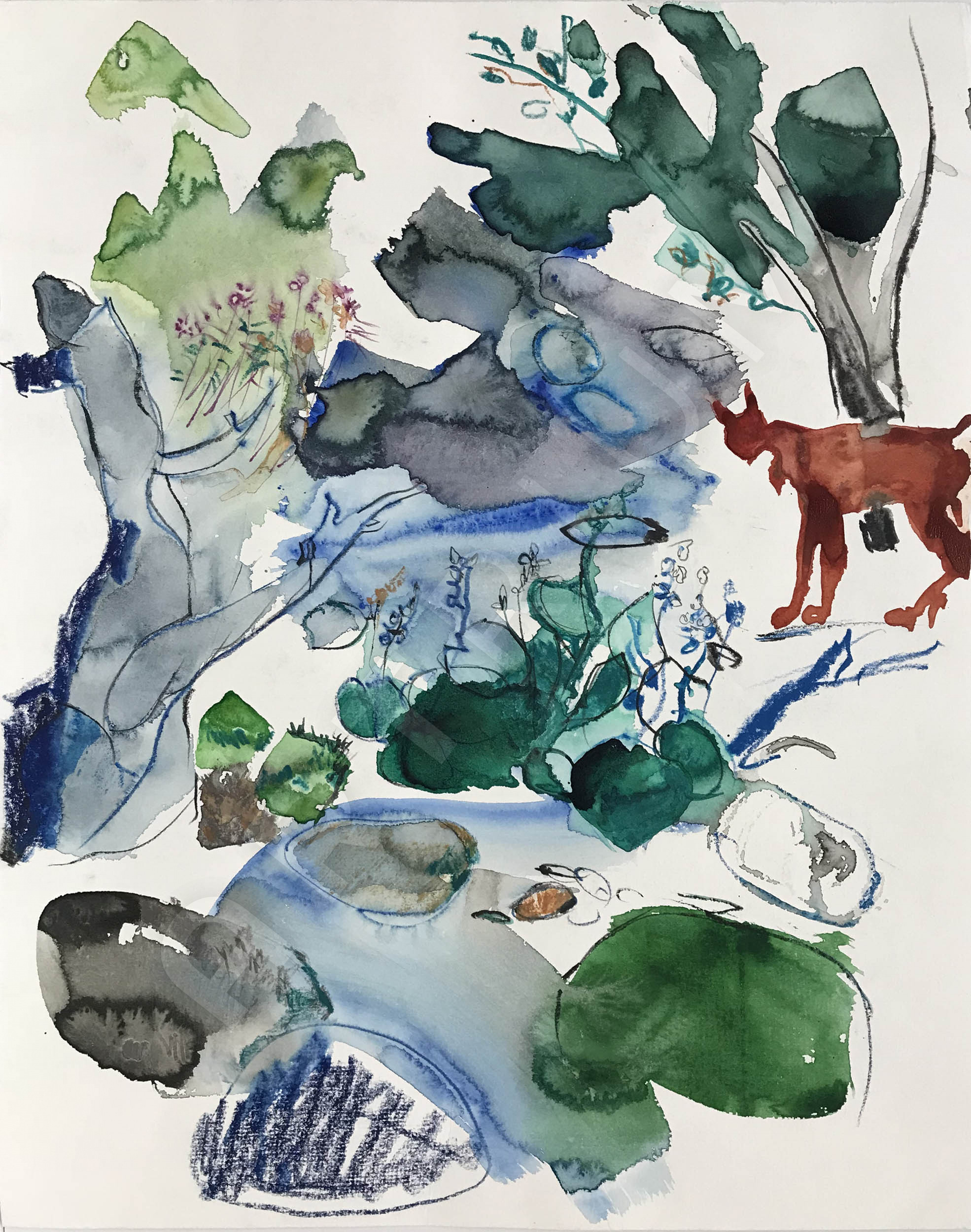 Aquarell, Aquarellkreide auf Papier
