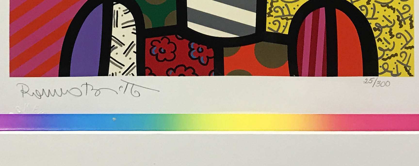- jedes signiert und nummeriert: "Romero Britto 25/300"