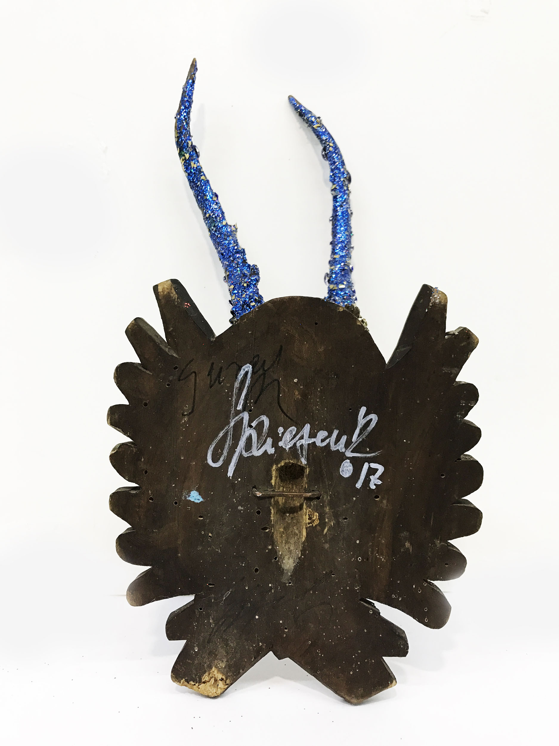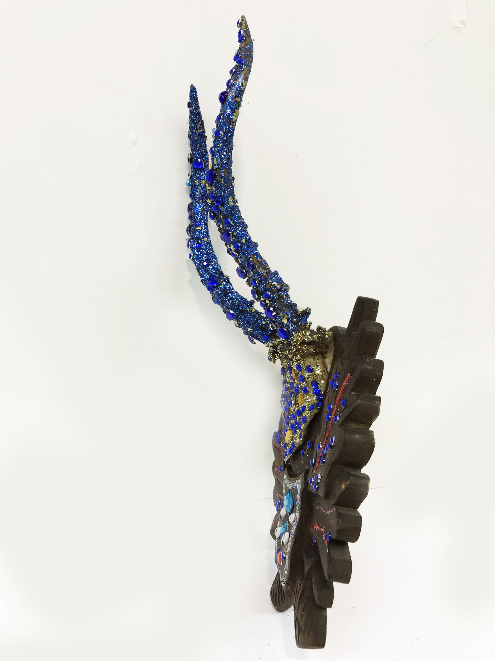 Mischtechnik, Diamantstaub, Glaskristalle auf Jagdtrophäe