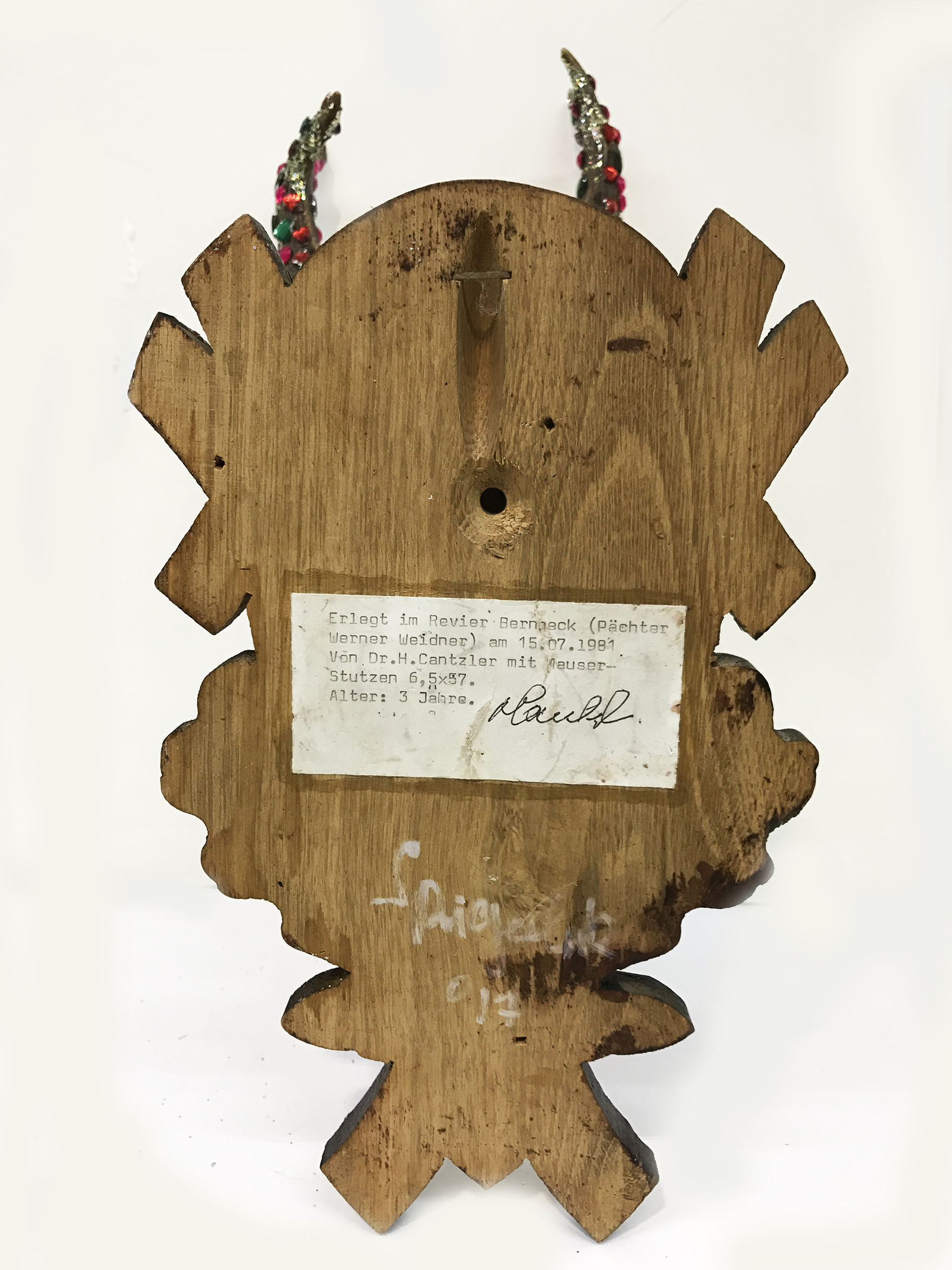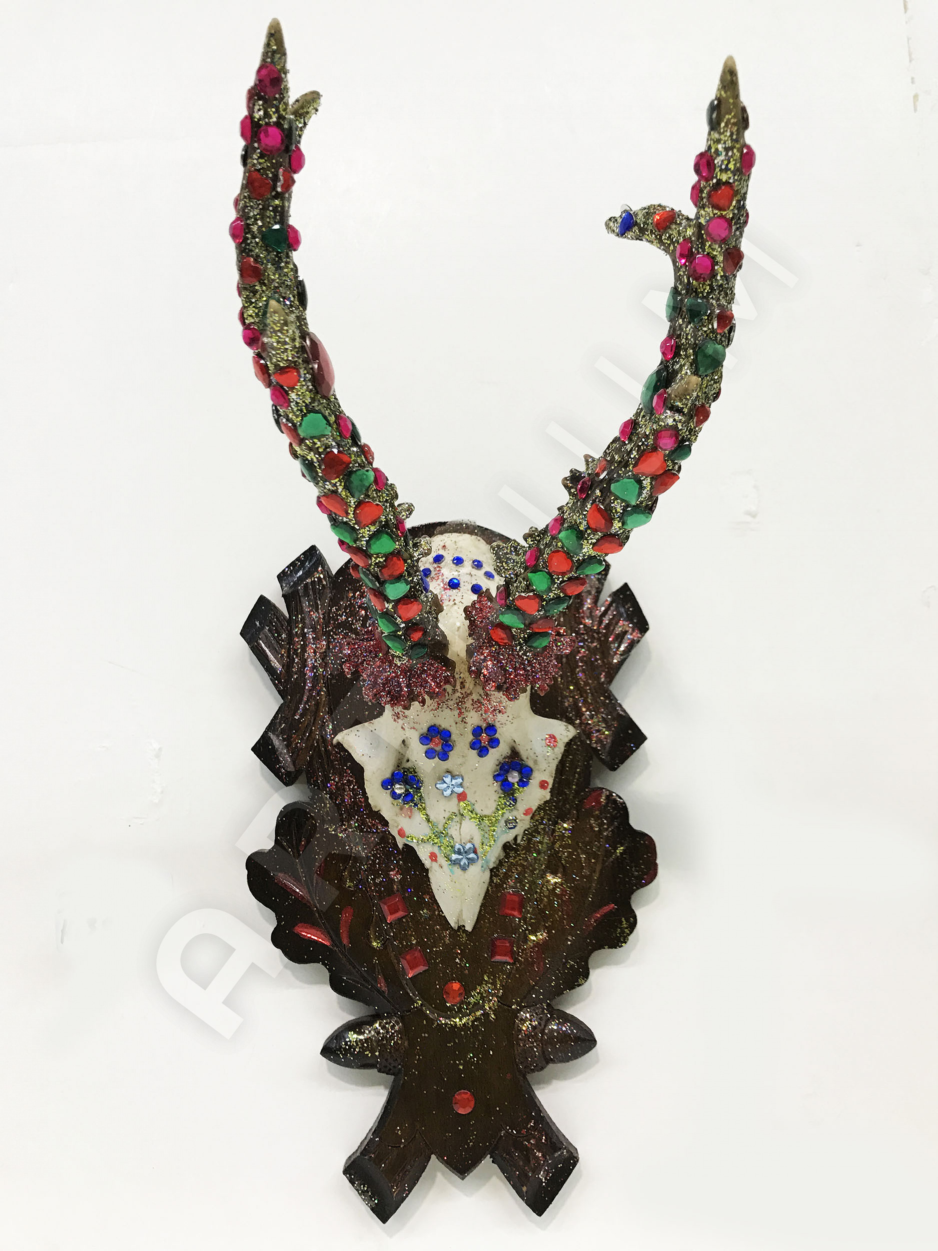 Mischtechnik, Diamantstaub, Glaskristalle auf Jagdtrophäe