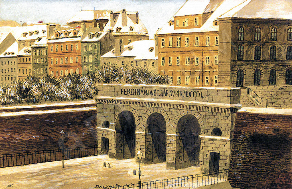 - monogrammiert: "MN." und betitelt und datiert: "Schottenthor. 1840"