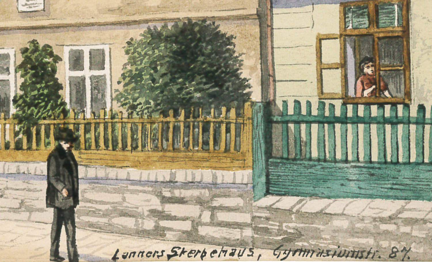- inscribed: "Lanners Sterbehaus. Gymnasiumstr. 87"
