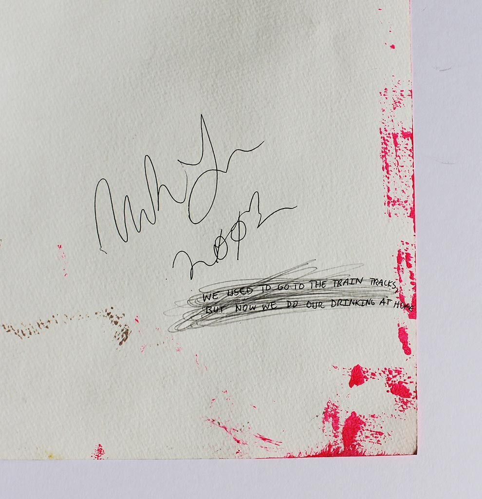 - Verso: signiert und datiert: "Nick Lowe 2001" und bezeichnet: "we used to go to the train tracks, but now we do our drinking at home"