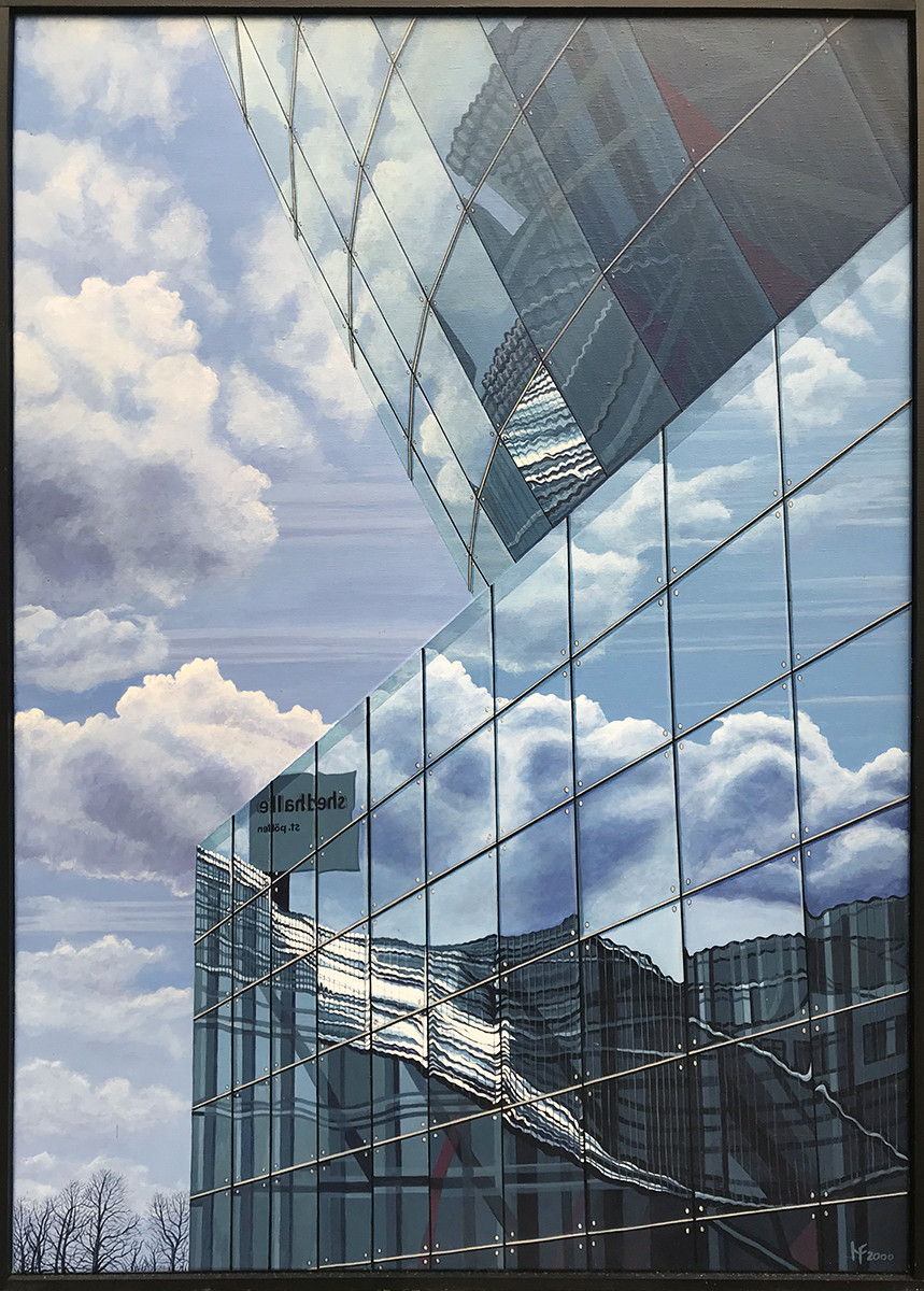 Vertreter des konzeptionellen Fotorealismus. Großstädtische Mobiliarsegmente - Wolkenkratzer, historische Baudenkmäler, Reklametafeln, Hinterhöfe, Fassaden, Dachlandschaften, Feuertreppen, Skulpturen im öffentlichen Raum, Gesimsarchitekturen - aber auch Strukturen der Architektur und der Natur im ländlichen Umfeld sind die Themen, denen sich der Künstler annimmt. Frauendorfer lotet dabei die Möglichkeiten aus, die sich aus einem unkonventionellen Blickwinkel ergeben. Seine markante Wahl der Motivausschnitte und ein bewusster Umgang mit Licht und Schatten zeichnen seine Bilder aus. Sie vermitteln dem Betrachter eine faszinierende Welt, in der die Grenzen von Schein und Wirklichkeit, von Realität und Phantasie aufgehoben scheinen.