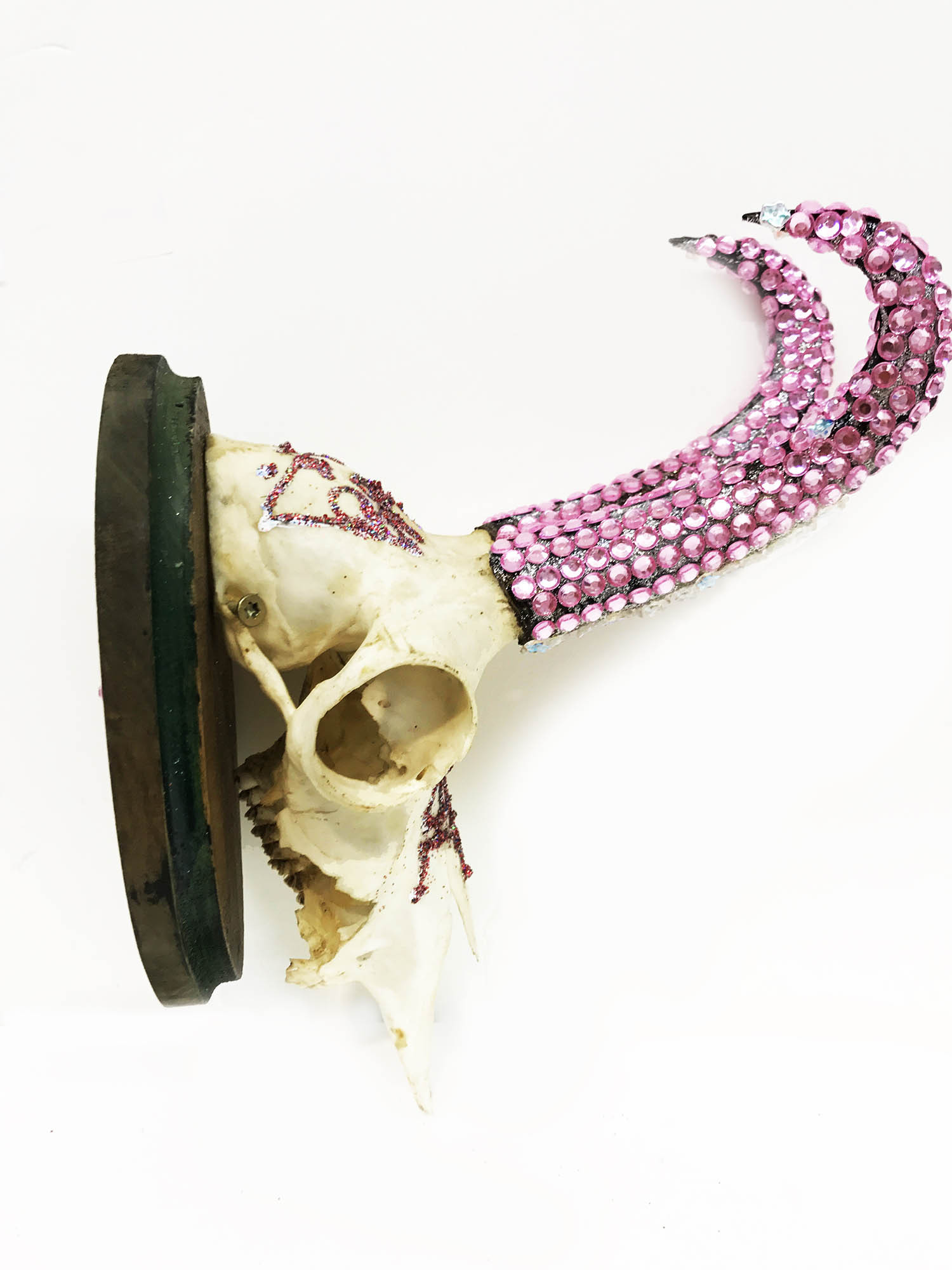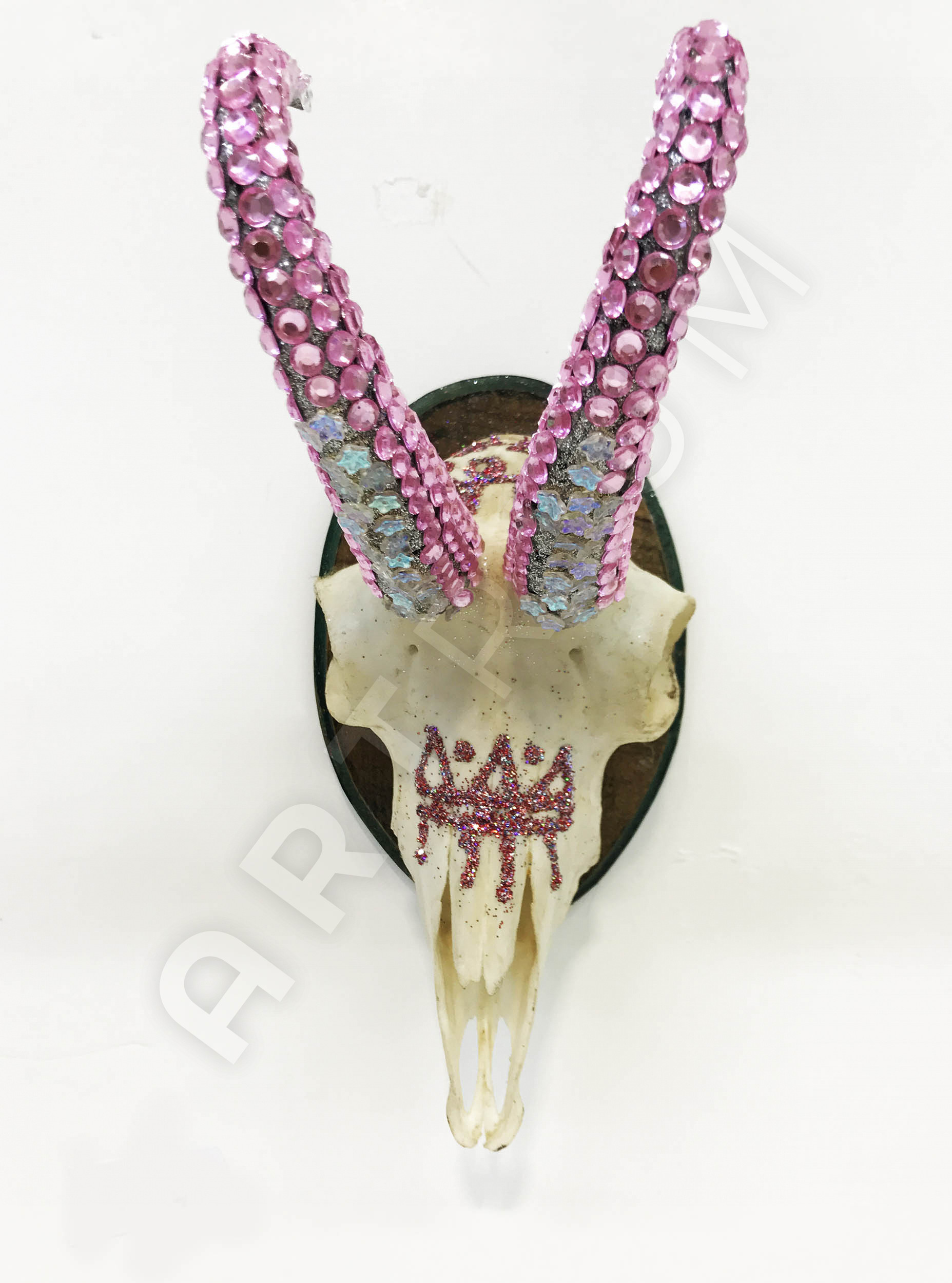 Mischtechnik, Diamantstaub, Glaskristalle auf Jagdtrophäe