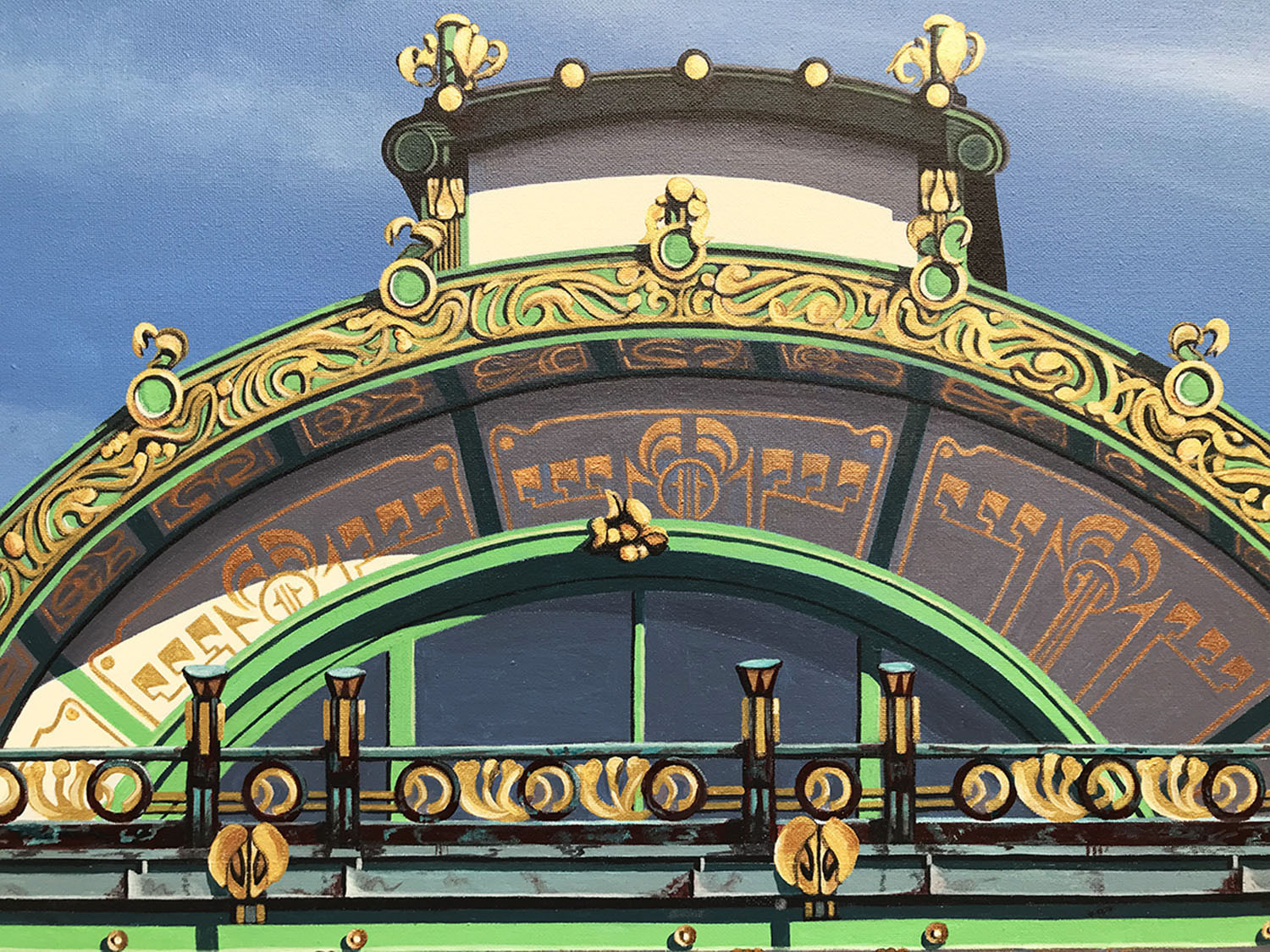 Vertreter des konzeptionellen Fotorealismus. Großstädtische Mobiliarsegmente - Wolkenkratzer, historische Baudenkmäler, Reklametafeln, Hinterhöfe, Fassaden, Dachlandschaften, Feuertreppen, Skulpturen im öffentlichen Raum, Gesimsarchitekturen - aber auch Strukturen der Architektur und der Natur im ländlichen Umfeld sind die Themen, denen sich der Künstler annimmt. Frauendorfer lotet dabei die Möglichkeiten aus, die sich aus einem unkonventionellen Blickwinkel ergeben. Seine markante Wahl der Motivausschnitte und ein bewusster Umgang mit Licht und Schatten zeichnen seine Bilder aus. Sie vermitteln dem Betrachter eine faszinierende Welt, in der die Grenzen von Schein und Wirklichkeit, von Realität und Phantasie aufgehoben scheinen.