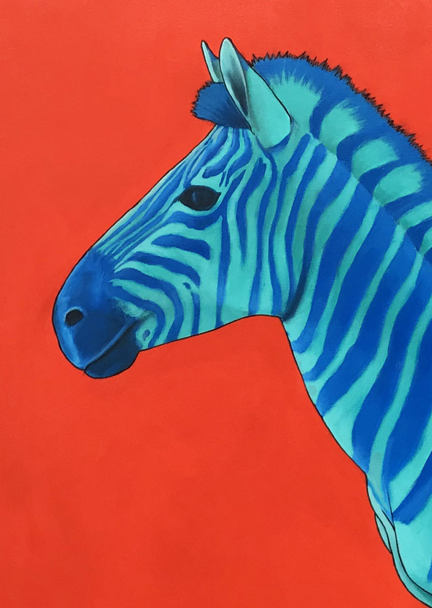 Purple and Blue Zebra on Red