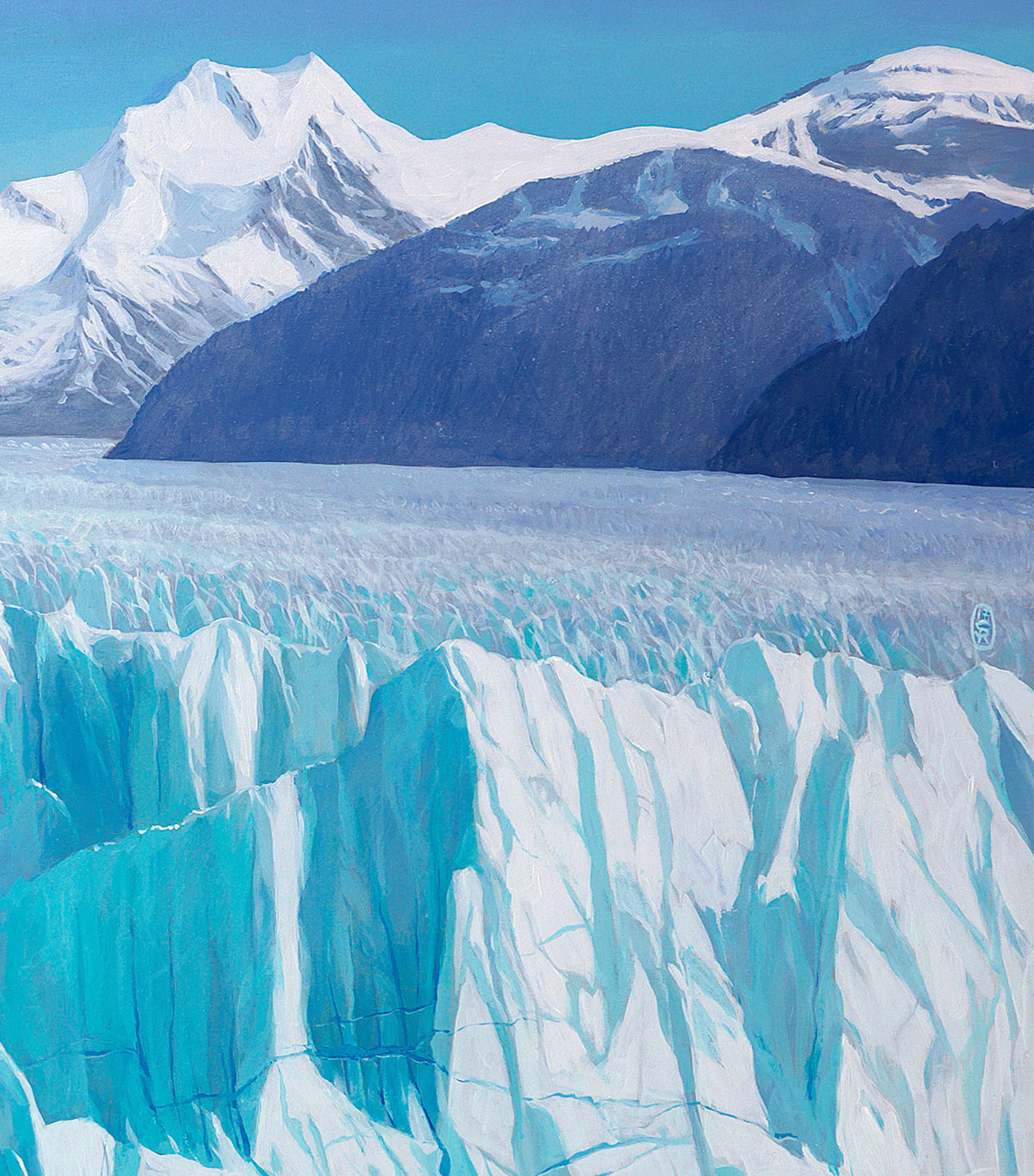 - Der Künstler hat mit diesem Motiv den Zustand des berühmten Gletschers festgehalten, der durch die Klimaveränderung in absehbarer Zeit ein verändertes Aussehen haben wird