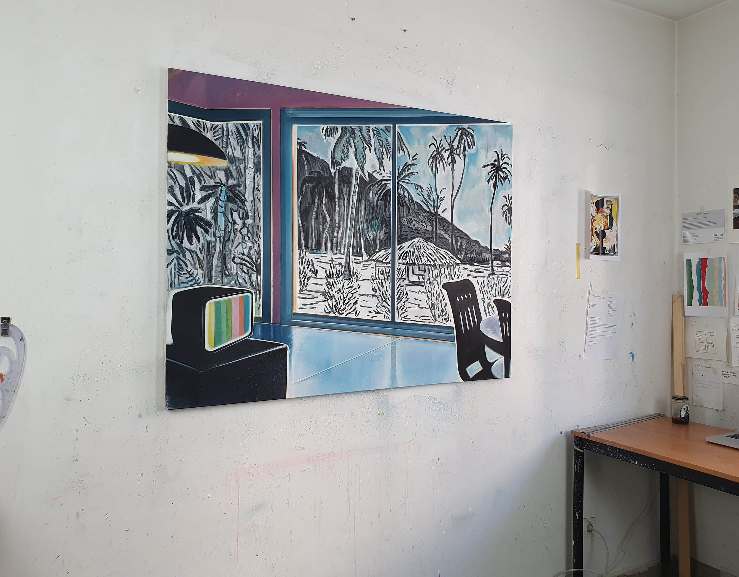 In einem von Stress geplagten Alltag und einer immer dynamischer werdenden Gesellschaft, in deren Zentrum der Fortschritt und die Technik steht, sehnt man sich zunehmend nach einem Gegenbild, nach Orten, an denen die Zeit still zu stehen scheint. Seine Ölbilder stellen ein Ideal und eine Idylle dar, in der sich der Wunsch nach Einfachheit und Problemlosigkeit wiederspiegelt. Die Arbeiten entsprechen einem Konstrukt, das in natürlicher Form gar nicht existiert. Es geht nicht nur darum Orte wieder aufleben zu lassen und in einer neuen Form darzustellen, sondern idealisierte Vorstellungen, die von unserem Umfeld hervorgerufen werden, zu hinterfragen. In seinen Arbeiten zelebriert er und hinterfrage die Geschichte des Mediums. Die Arbeiten zeigen ein Bewusstsein für die fortdauernde Bedeutung der Malerei als Kommunikationsmittel für die Art und Weise, wie wir unser tägliches Leben erleben. In den Arbeiten zeigt Cotroneo eine starke Mischung aus Atmosphäre und Zwischenfall, Alleinsein und Sinnhaftigkeit. Die Malereien stellen Situationen als psychologische Ereignisse dar und beschreiben Reisen, Transit und Orte wie aus einer existenziellen Perspektive. Ihre Vision ist stark, fragend, distanziert, ihr Empfinden von Ort und Zeit sind mit jenen des modernen Reisenden vergleichbar, der zugleich isoliert, staatenlos, leidenschaftslos und doch verletzlich ist. Zufälligkeit und Stase bestimmen die Stimmung. Farbe, Form und Zusammensetzung sind angespannt, zielstrebig und beschreiben Situationen des „geöffneten Bewusstseins“. Dichtung und Flüchtigkeit präsidieren, die Dimensionen erhöhter Momente werden im Medium der Malerei transkribiert. Durch die entstehende „Flächigkeit“, die zunächst klar, plakativ und oft farbenfroh wirkt, wird versucht mehr psychologischen Raum entstehen zu lassen, die der Betrachter für eigene Assoziationen nützen soll.