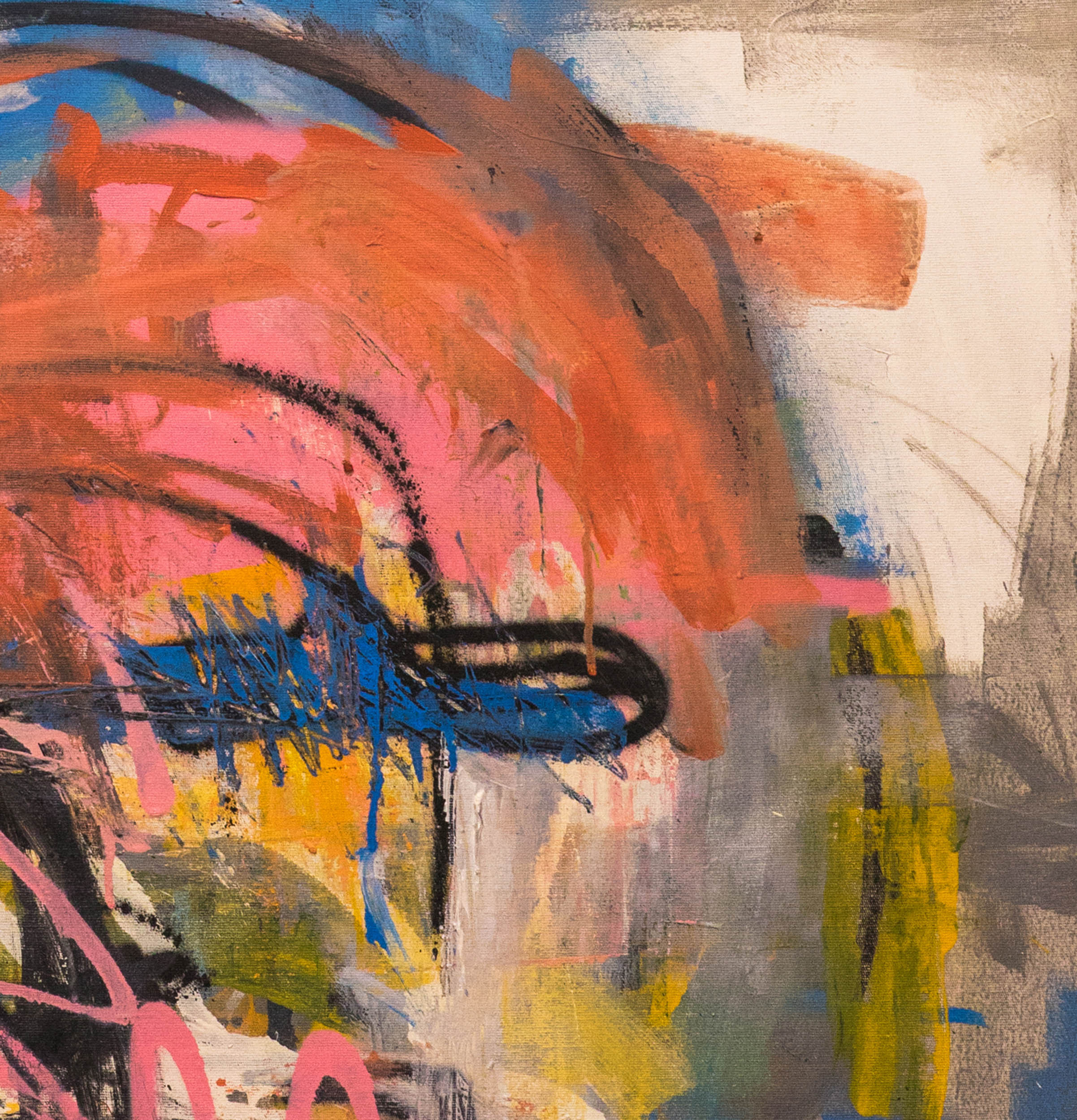 Acrylic, crayons, graffiti, oil and spray on canvas