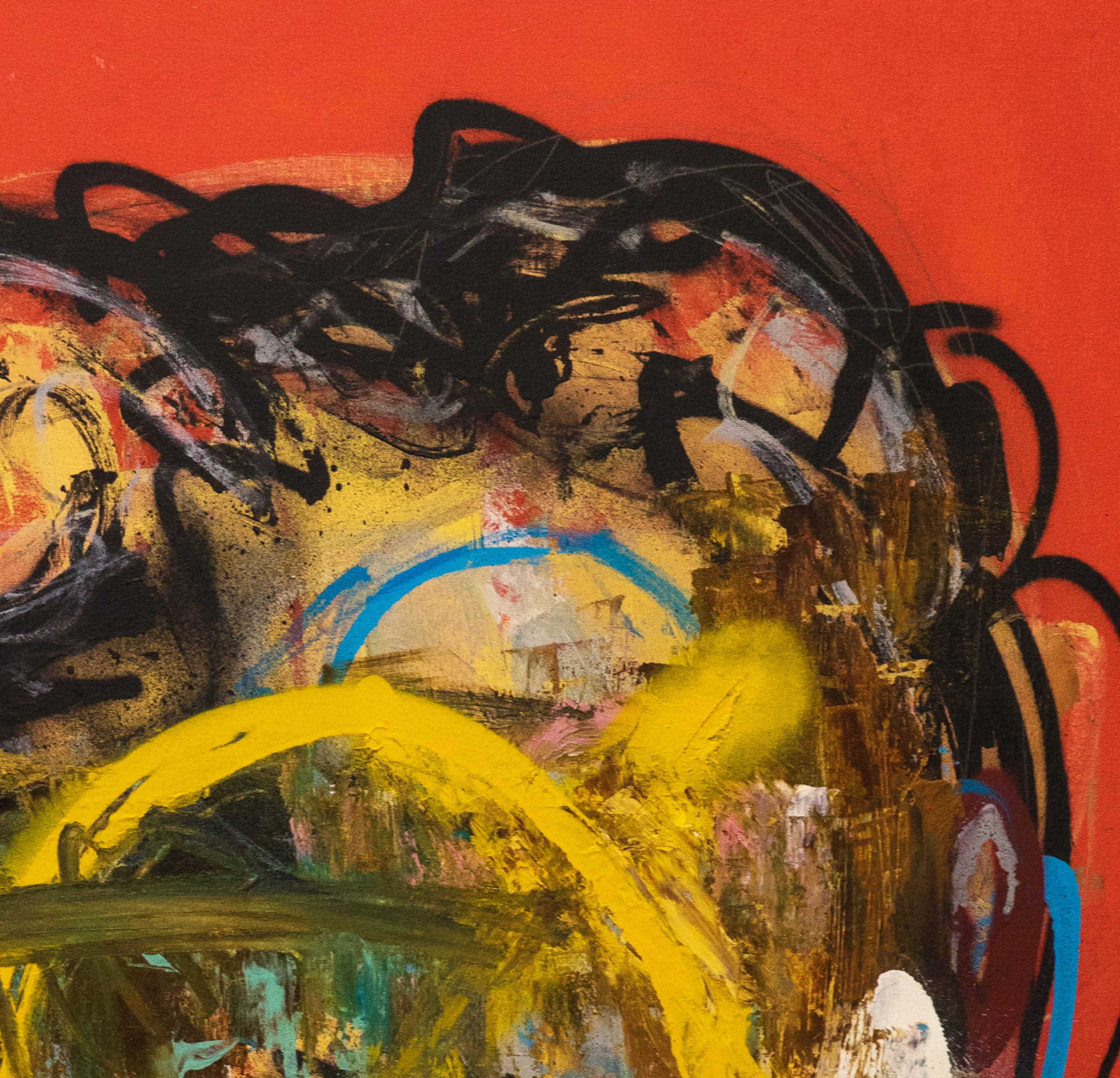Acryl, Kreide, Graffti, Öl und Spray auf Leinwand