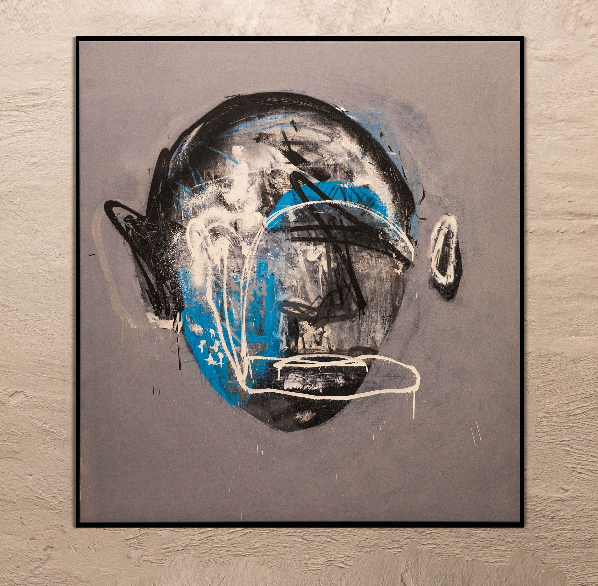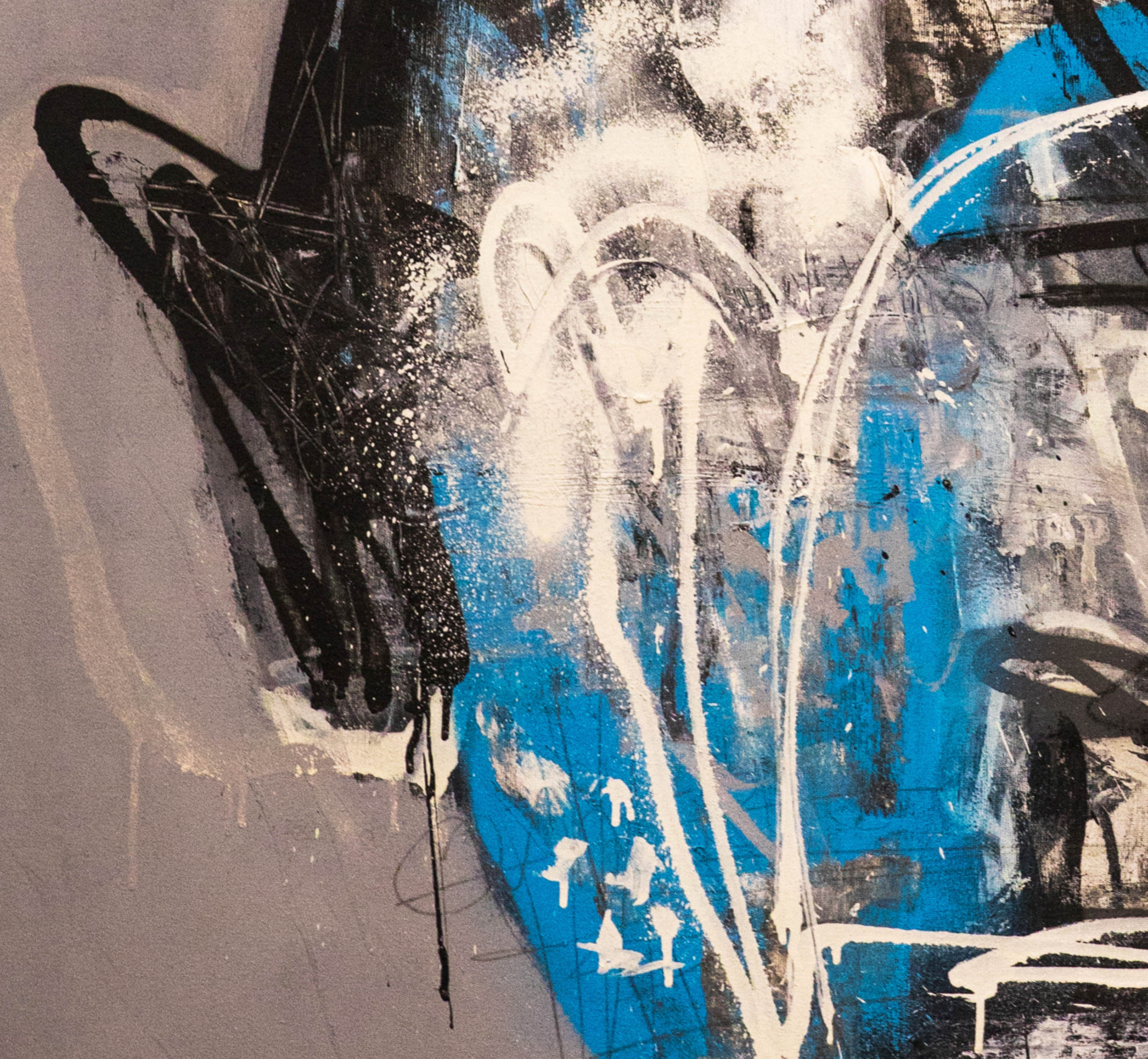 Acryl, Kreide, Graffiti, Öl und Spray auf Leinwand