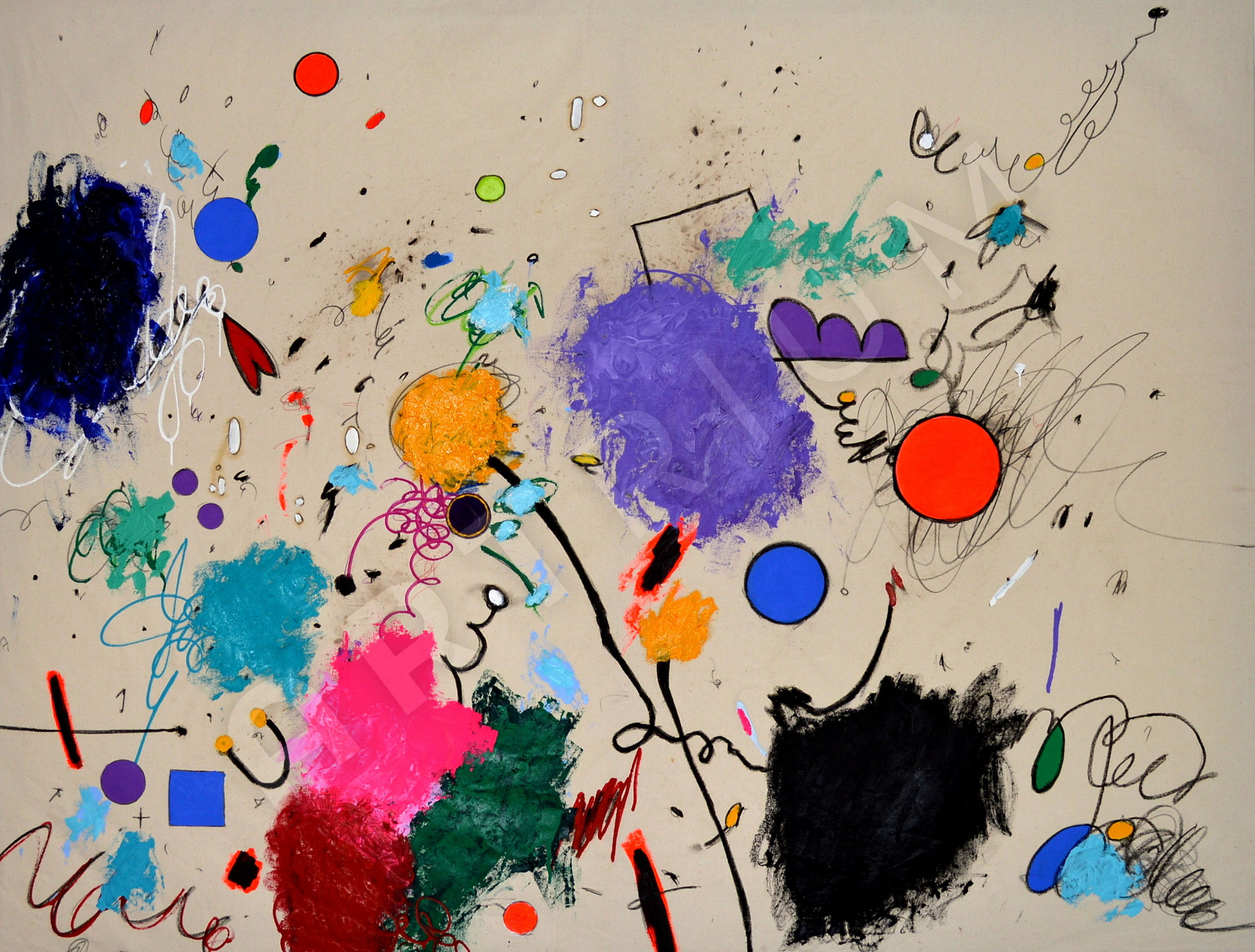 Acrylic, oil, charcoal, pencil, gesso on canvas