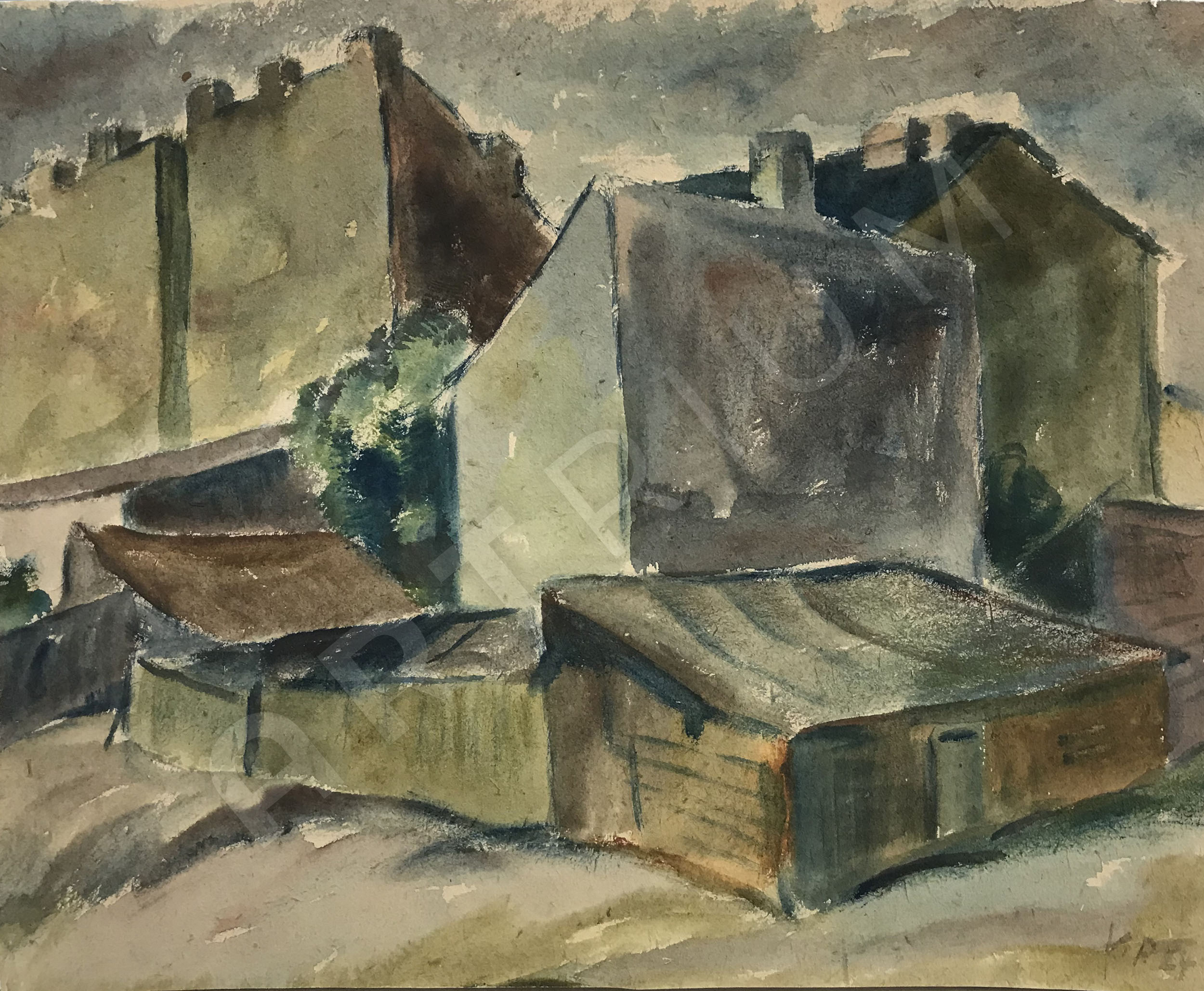 - Verso: betitelt: "Schuppen", Ausfuhrstempel