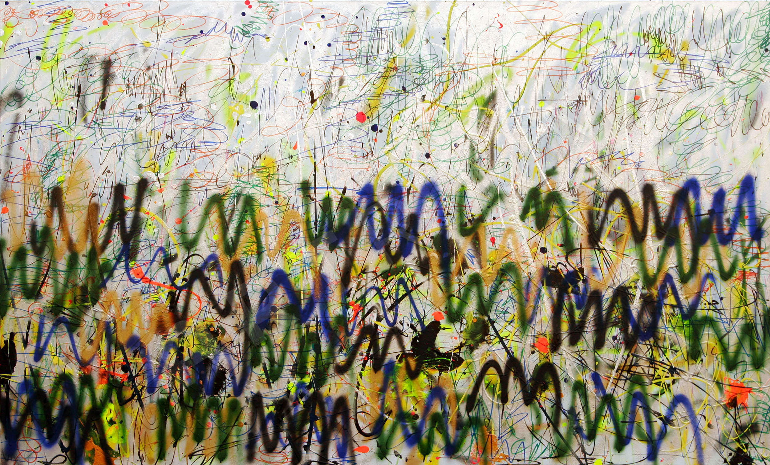 Acryl, Spayfarbe und permanent Marker auf Leinwand