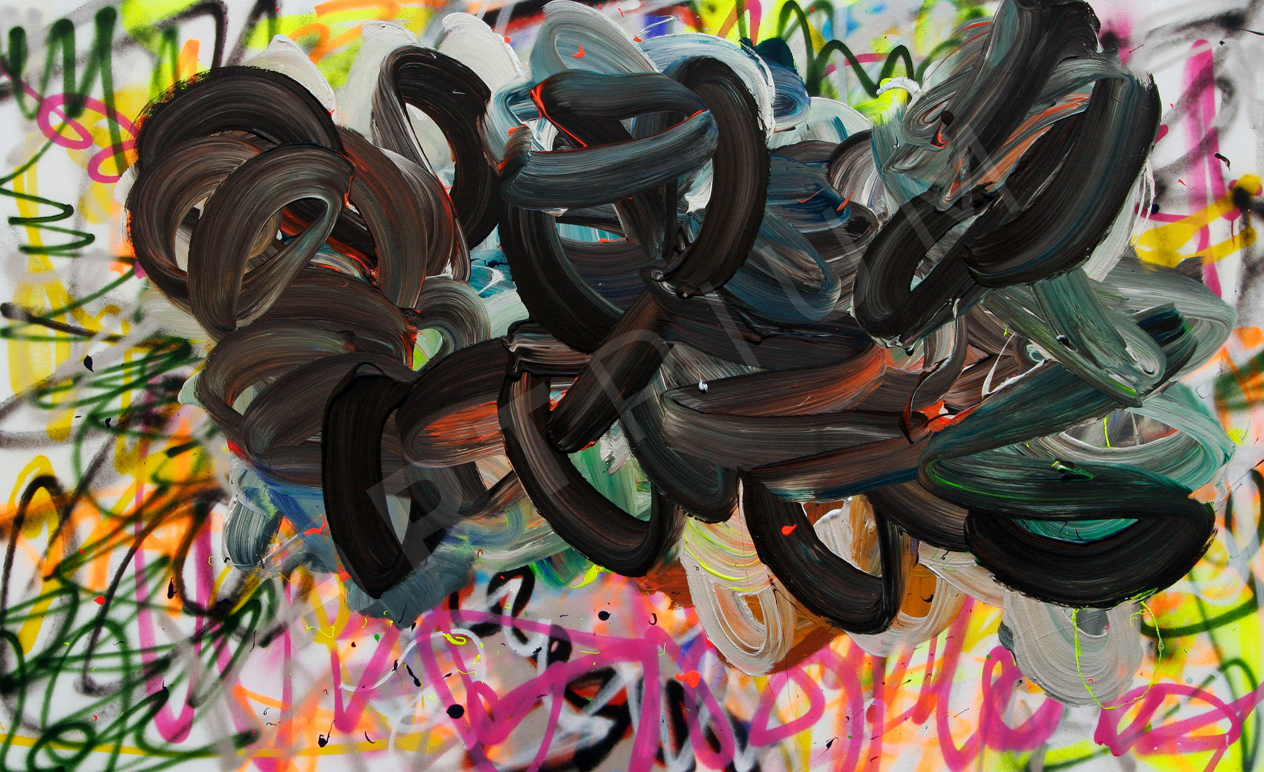 Acryl und Sprayfarbe auf Leinwand