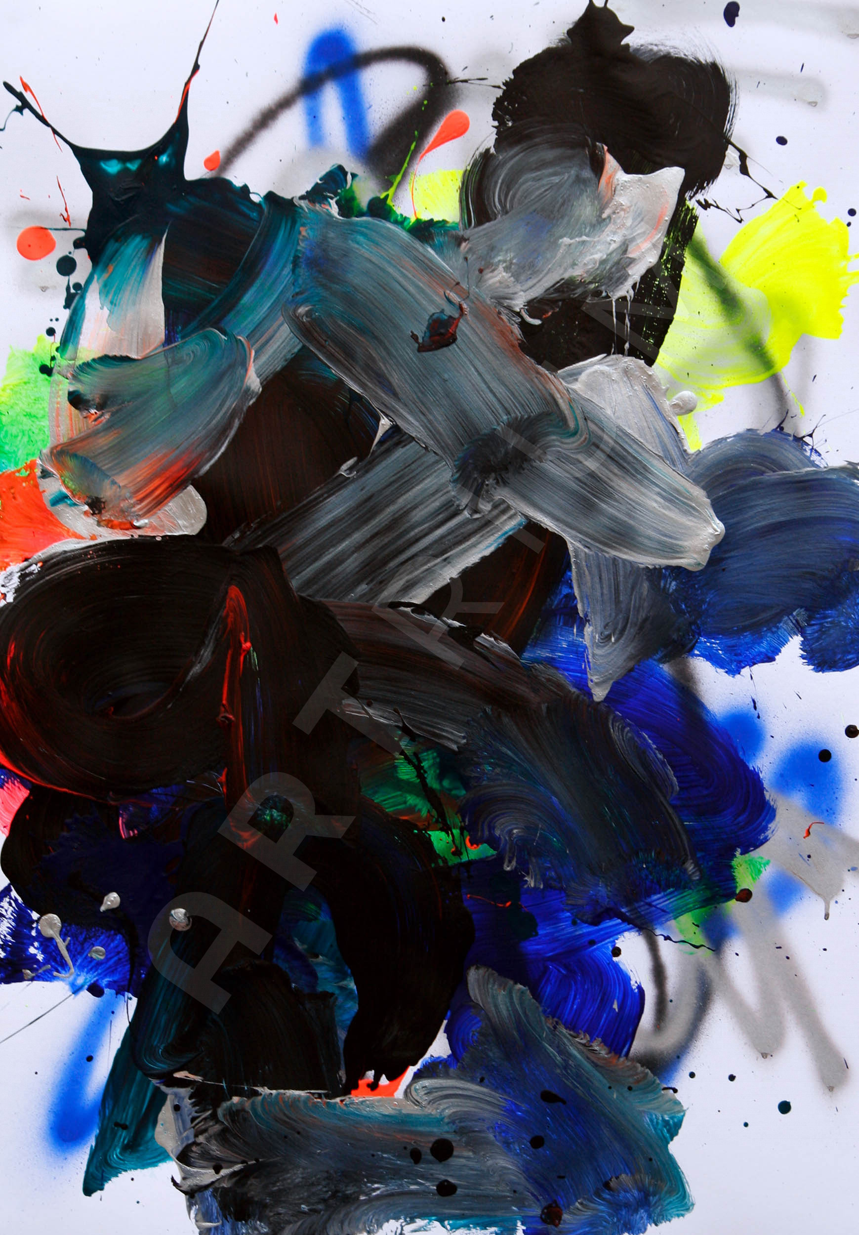 Acryl und Sprayfarbe auf Papier