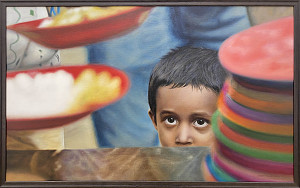 "Ich versuche, die Person einzufangen, die sich in diesem Moment in der Farbe offenbart." (Pepijn Simon) Mit dieser Aussage drückt Pepijn Simon seine Entscheidung aus, den Menschen in den Mittelpunkt zu stellen, ihn aber nicht von außen zu betrachten, sondern ihn von innen zu erforschen. Das Spezifische am Menschen ist seine Verbindung mit dem Bewusstsein des Todes, was den physischen und anatomischen Aspekten in seinem Werk Tiefe verleiht. In Simons Werk findet ein sehr interessantes Spiel zwischen dem Inneren und dem Äußeren statt. Die Das Innere ist der Teil, der fühlt, liebt, fürchtet, reflektiert und urteilt, das Äußere ist das Organische und Materielle, das reflektiert, sich ausdehnt, reißt und zerfällt. Die neue Verwendung des kalten und sterilen Aluminiums kühlt und reflektiert unsere eigenen Bilder. Einige Gemälde zeigen Gesichter und Körper, die zerrissen, zerschnitten und verstümmelt wurden und den menschlichen, lebendigen Aspekt des Körpers zu zerstören scheinen. Dies verstört den Betrachter, da es eine gequälte, statische Darstellung für den Betrachter erzeugt und eine einhellige Erinnerung an den Tod und einen Blick in das Unterbewusstsein in Form von gesichtslosem Fleisch schafft. Die negative Reaktion oder der Schock des Betrachters besteht darin, dass er glaubt, er sei einem visuellen Angriff des Künstlers ausgesetzt. In Wahrheit ist die Ablehnung und Negativität jedoch das Ergebnis eines unterbewussten Bewusstseins und nicht einer bewussten Verleugnung.