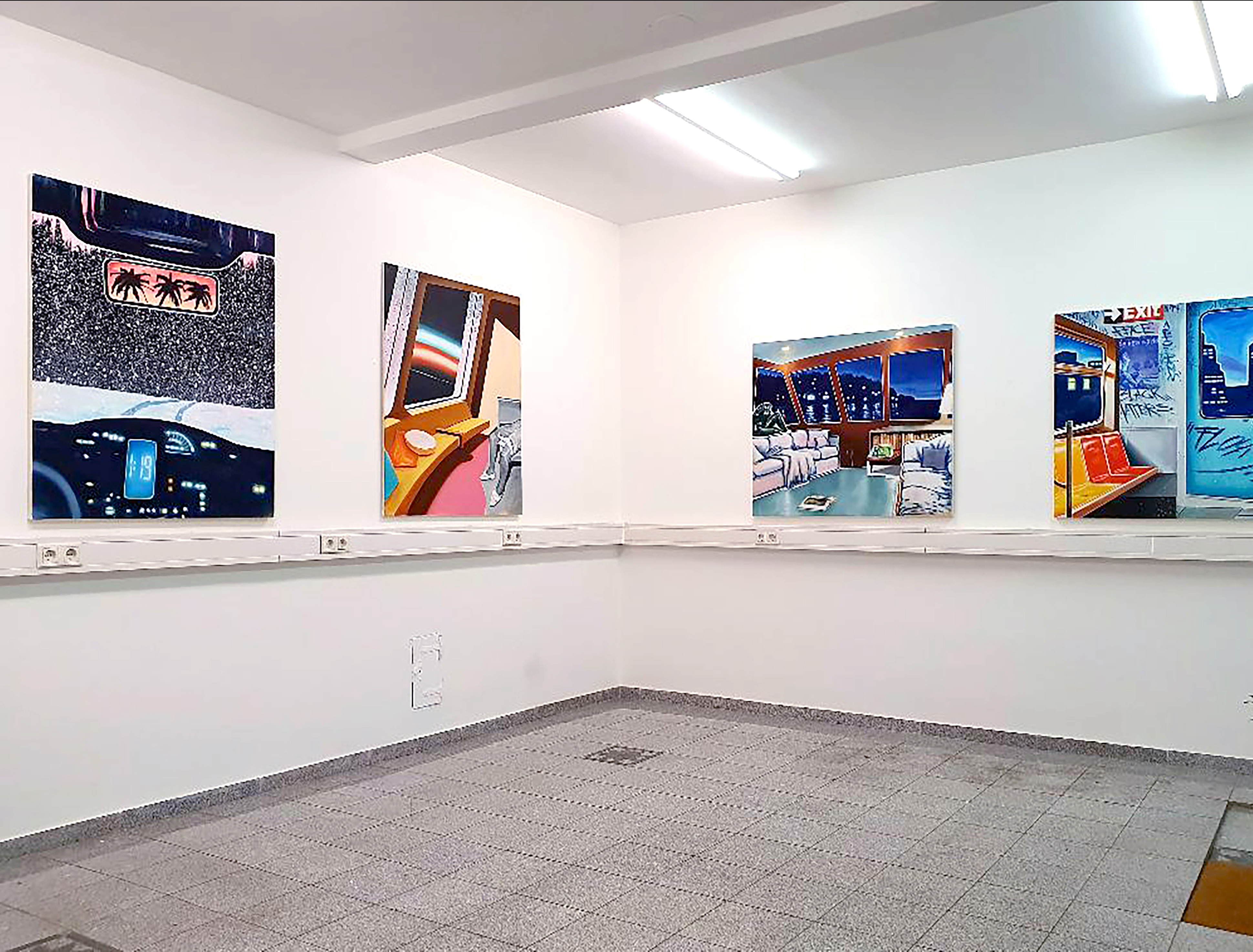 In einem von Stress geplagten Alltag und einer immer dynamischer werdenden Gesellschaft, in deren Zentrum der Fortschritt und die Technik steht, sehnt man sich zunehmend nach einem Gegenbild, nach Orten, an denen die Zeit still zu stehen scheint. Seine Ölbilder stellen ein Ideal und eine Idylle dar, in der sich der Wunsch nach Einfachheit und Problemlosigkeit wiederspiegelt. Die Arbeiten entsprechen einem Konstrukt, das in natürlicher Form gar nicht existiert. Es geht nicht nur darum Orte wieder aufleben zu lassen und in einer neuen Form darzustellen, sondern idealisierte Vorstellungen, die von unserem Umfeld hervorgerufen werden, zu hinterfragen. In seinen Arbeiten zelebriert er und hinterfrage die Geschichte des Mediums. Die Arbeiten zeigen ein Bewusstsein für die fortdauernde Bedeutung der Malerei als Kommunikationsmittel für die Art und Weise, wie wir unser tägliches Leben erleben. In den Arbeiten zeigt Cotroneo eine starke Mischung aus Atmosphäre und Zwischenfall, Alleinsein und Sinnhaftigkeit. Die Malereien stellen Situationen als psychologische Ereignisse dar und beschreiben Reisen, Transit und Orte wie aus einer existenziellen Perspektive. Ihre Vision ist stark, fragend, distanziert, ihr Empfinden von Ort und Zeit sind mit jenen des modernen Reisenden vergleichbar, der zugleich isoliert, staatenlos, leidenschaftslos und doch verletzlich ist. Zufälligkeit und Stase bestimmen die Stimmung. Farbe, Form und Zusammensetzung sind angespannt, zielstrebig und beschreiben Situationen des „geöffneten Bewusstseins“. Dichtung und Flüchtigkeit präsidieren, die Dimensionen erhöhter Momente werden im Medium der Malerei transkribiert. Durch die entstehende „Flächigkeit“, die zunächst klar, plakativ und oft farbenfroh wirkt, wird versucht mehr psychologischen Raum entstehen zu lassen, die der Betrachter für eigene Assoziationen nützen soll.