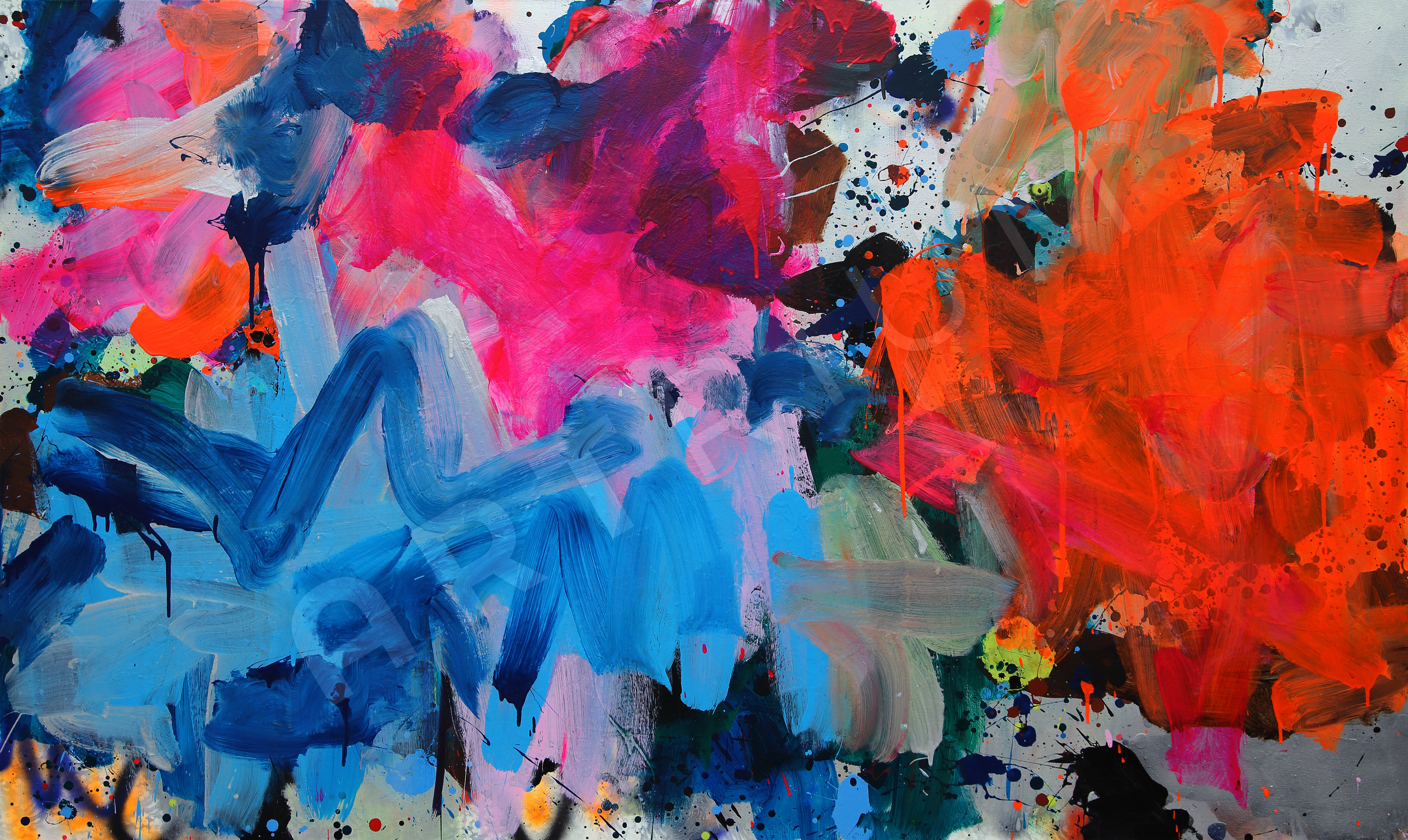 Acryl und Sprayfarbe auf Leinwand