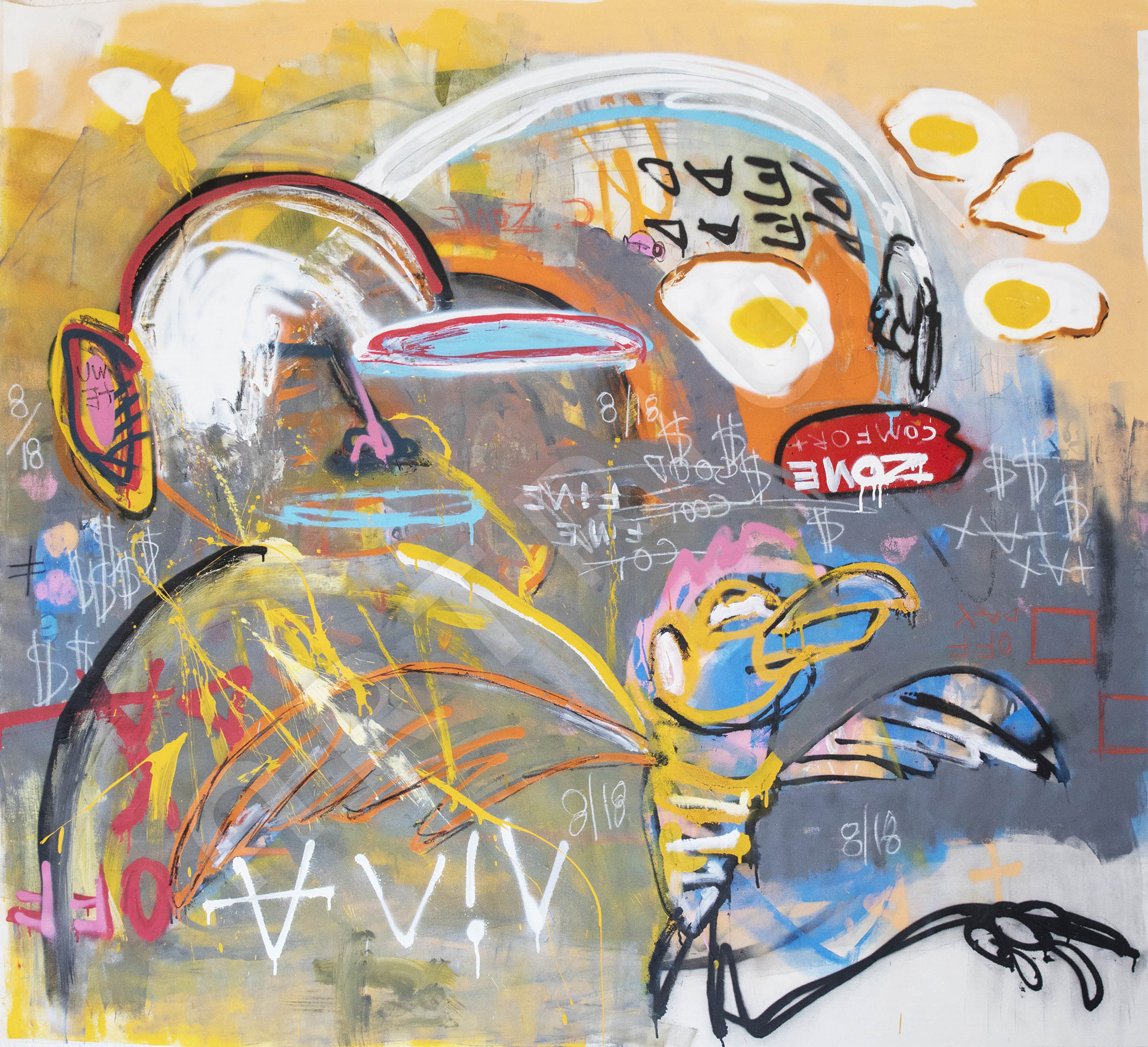 Acryl, Öl, Kreide, Graffiti, Spray auf Leinwand