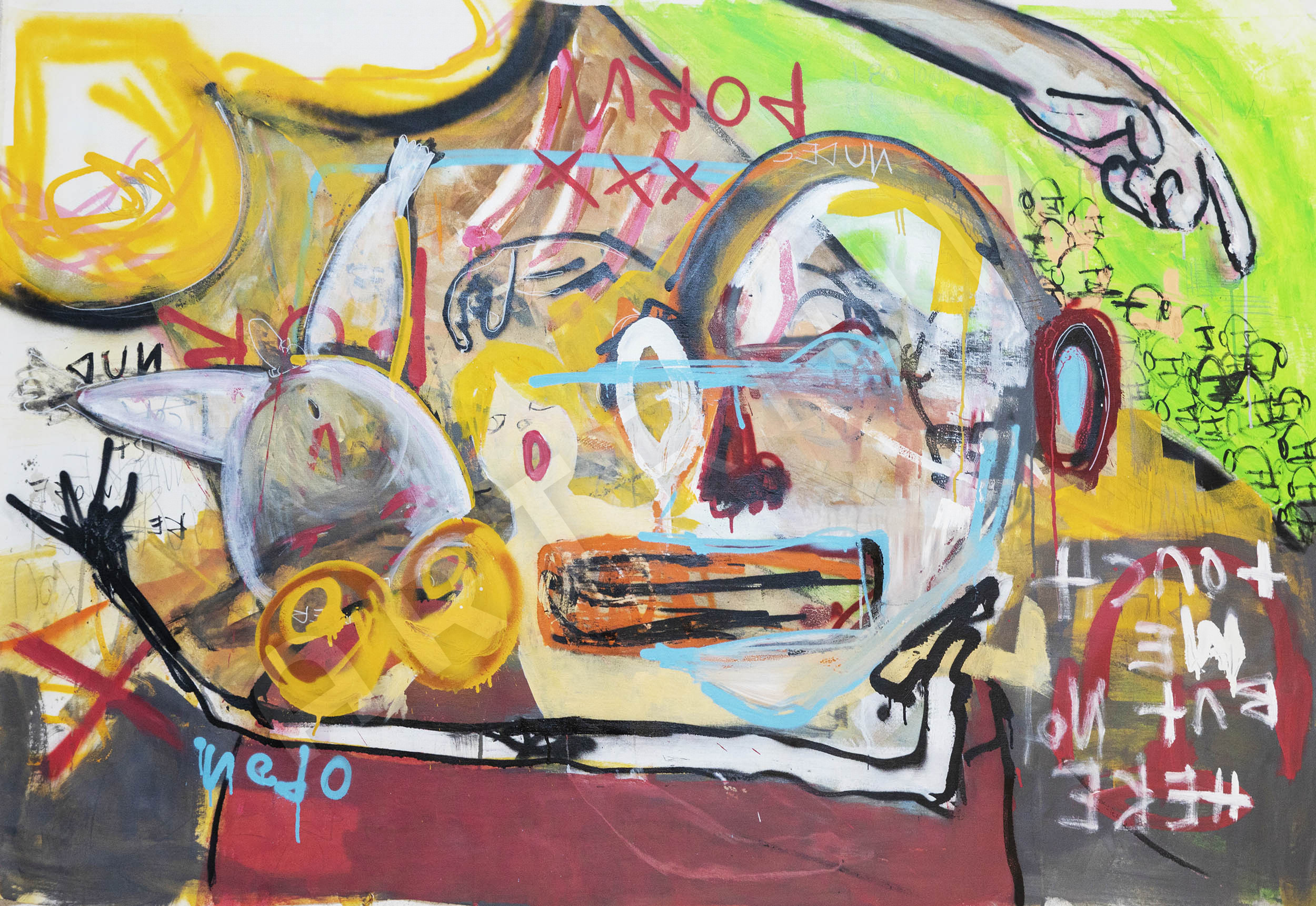 Acryl, Öl, Kreide, Graffiti, Spray auf Leinwand