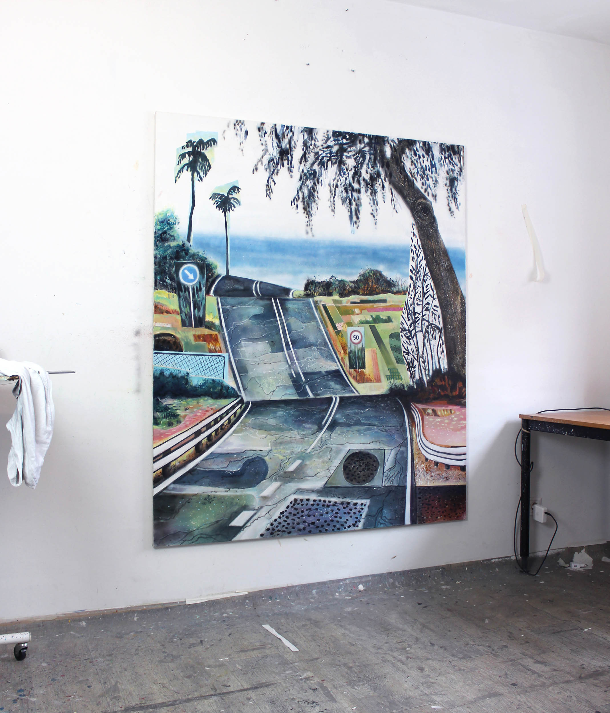 In einem von Stress geplagten Alltag und einer immer dynamischer werdenden Gesellschaft, in deren Zentrum der Fortschritt und die Technik steht, sehnt man sich zunehmend nach einem Gegenbild, nach Orten, an denen die Zeit still zu stehen scheint. Seine Ölbilder stellen ein Ideal und eine Idylle dar, in der sich der Wunsch nach Einfachheit und Problemlosigkeit wiederspiegelt. Die Arbeiten entsprechen einem Konstrukt, das in natürlicher Form gar nicht existiert. Es geht nicht nur darum Orte wieder aufleben zu lassen und in einer neuen Form darzustellen, sondern idealisierte Vorstellungen, die von unserem Umfeld hervorgerufen werden, zu hinterfragen. In seinen Arbeiten zelebriert er und hinterfrage die Geschichte des Mediums. Die Arbeiten zeigen ein Bewusstsein für die fortdauernde Bedeutung der Malerei als Kommunikationsmittel für die Art und Weise, wie wir unser tägliches Leben erleben. In den Arbeiten zeigt Cotroneo eine starke Mischung aus Atmosphäre und Zwischenfall, Alleinsein und Sinnhaftigkeit. Die Malereien stellen Situationen als psychologische Ereignisse dar und beschreiben Reisen, Transit und Orte wie aus einer existenziellen Perspektive. Ihre Vision ist stark, fragend, distanziert, ihr Empfinden von Ort und Zeit sind mit jenen des modernen Reisenden vergleichbar, der zugleich isoliert, staatenlos, leidenschaftslos und doch verletzlich ist. Zufälligkeit und Stase bestimmen die Stimmung. Farbe, Form und Zusammensetzung sind angespannt, zielstrebig und beschreiben Situationen des „geöffneten Bewusstseins“. Dichtung und Flüchtigkeit präsidieren, die Dimensionen erhöhter Momente werden im Medium der Malerei transkribiert. Durch die entstehende „Flächigkeit“, die zunächst klar, plakativ und oft farbenfroh wirkt, wird versucht mehr psychologischen Raum entstehen zu lassen, die der Betrachter für eigene Assoziationen nützen soll.