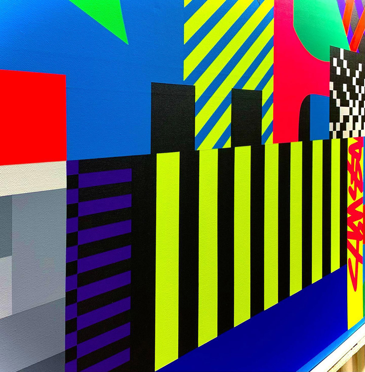 Luis Esquivel (1982, Mexiko-Stadt) ist ein multidisziplinärer mexikanischer Pop-Künstler, der in Mexiko-Stadt lebt und arbeitet. Er machte seinen Abschluss in Grafikdesign im Jahr 2005. Nachdem er 10 Jahre lang für Grafikdesign-Studios und globale Werbeagenturen gearbeitet hatte, gründete er sein eigenes Kunststudio, um sich selbst auszudrücken und Design und Kunst zu verbinden. Er hat in Mexiko-Stadt ausgestellt und wurde kürzlich eingeladen, in den USA auszustellen. Er liebt es, mit dynamischen Kompositionen, kontrastierenden hellen Neonfarben, Formen und Mustern zu arbeiten.