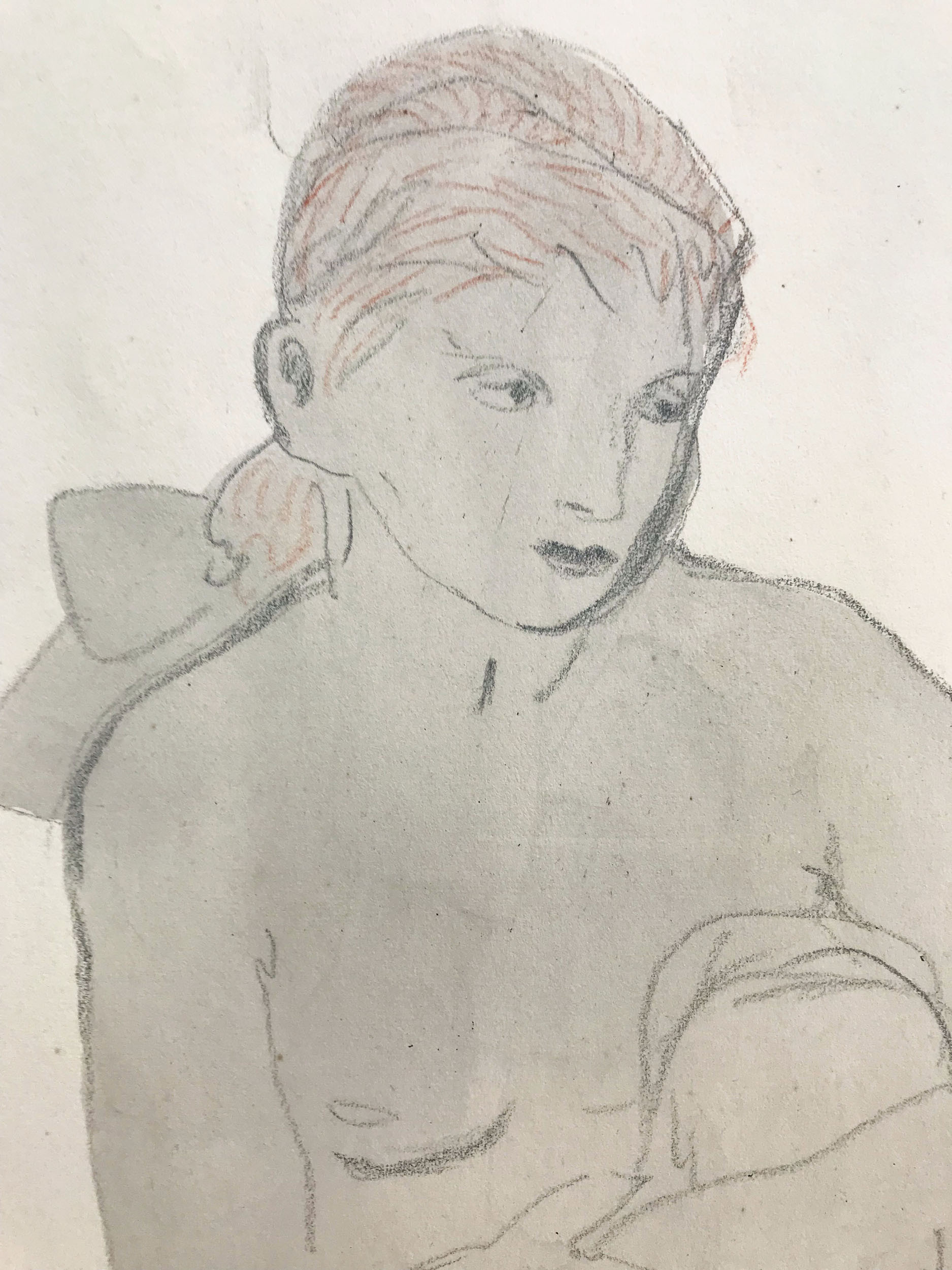 Bleistift, Buntstift aquarelliert auf Papier