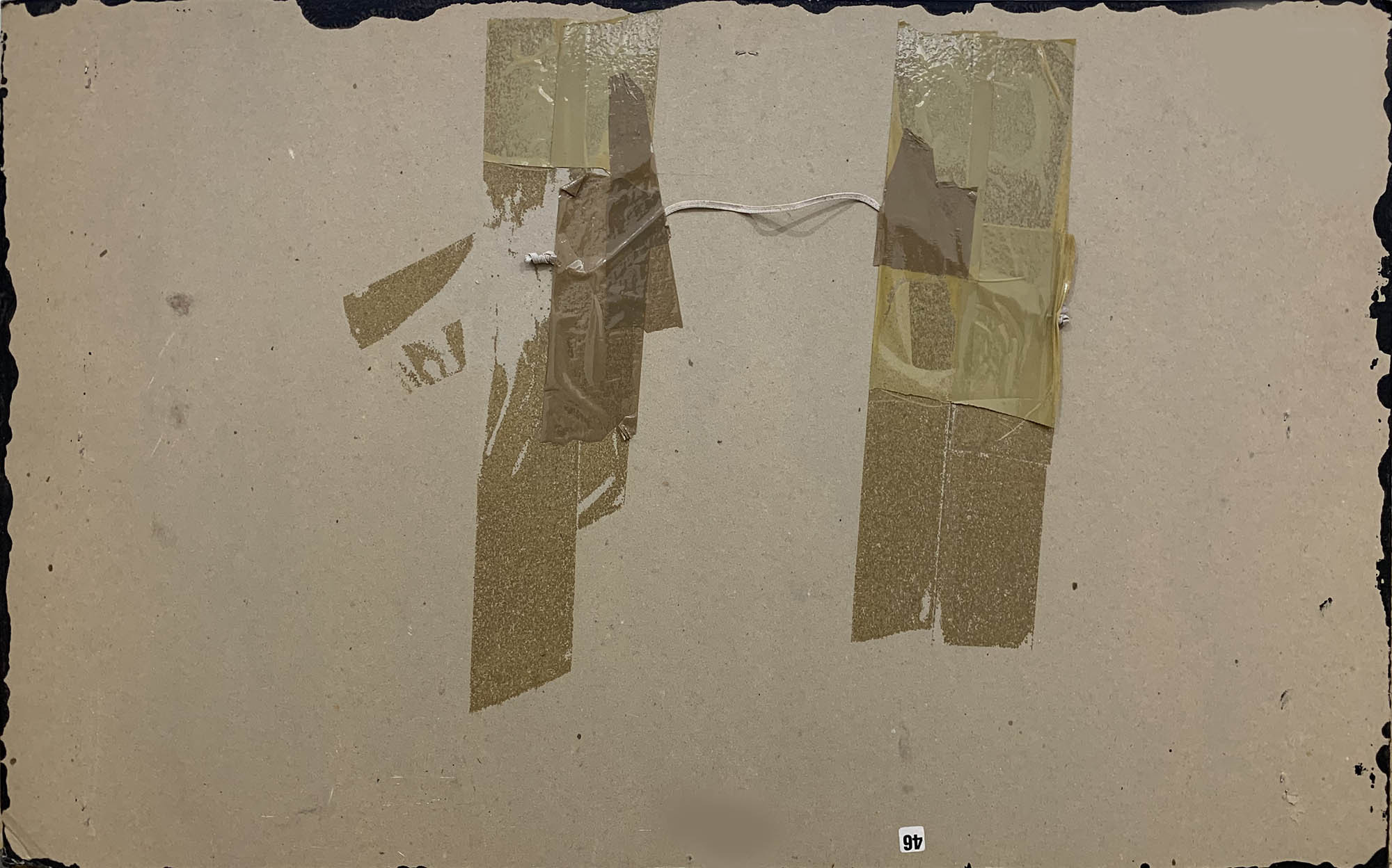 - Plant fibers, double woven, embroidered, geometric pattern, mounted on cardboard