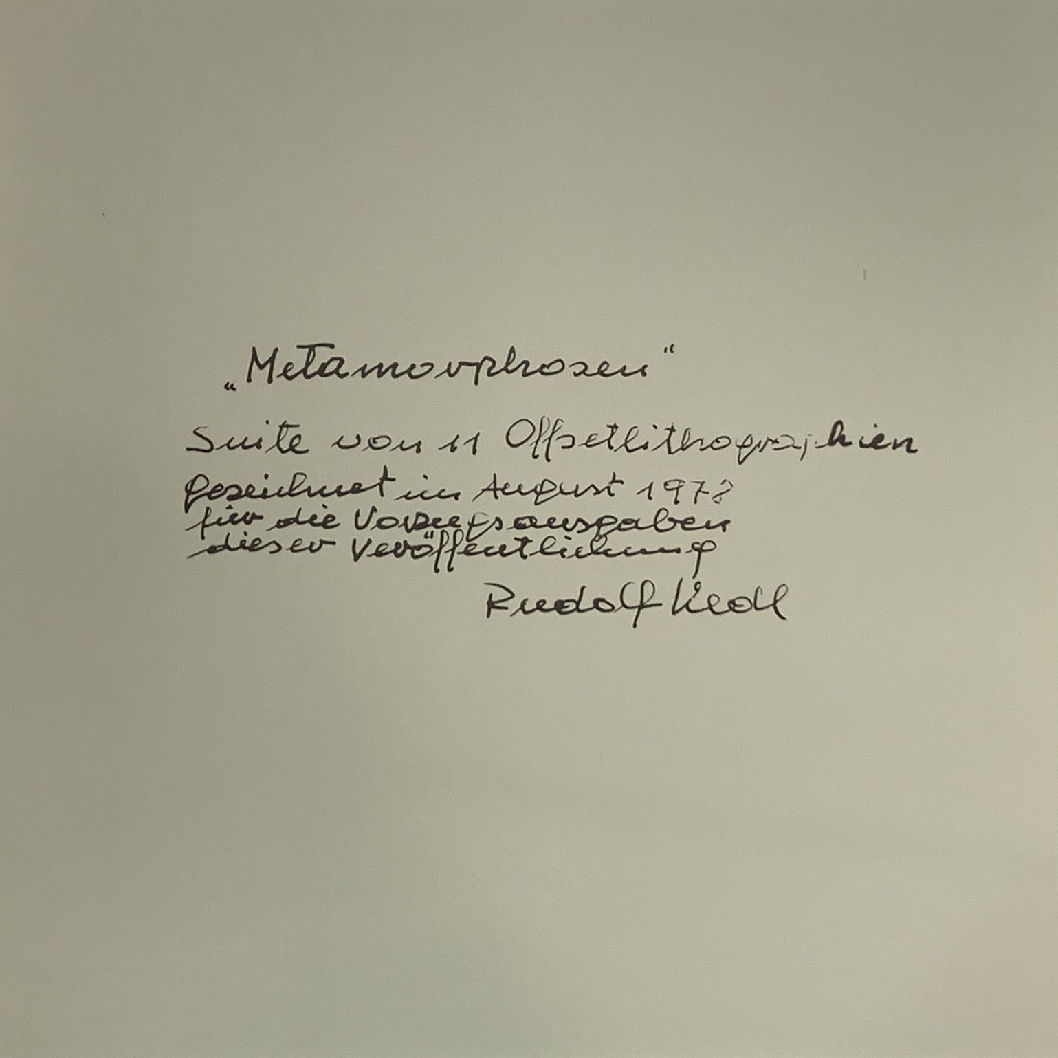 - Suite von 11 Offsetlithographien "Metamorphosen", signiert und datiert (mit Bleistift) "Rudolf Kedl 1978", Frontrelief Kupfer vergoldet