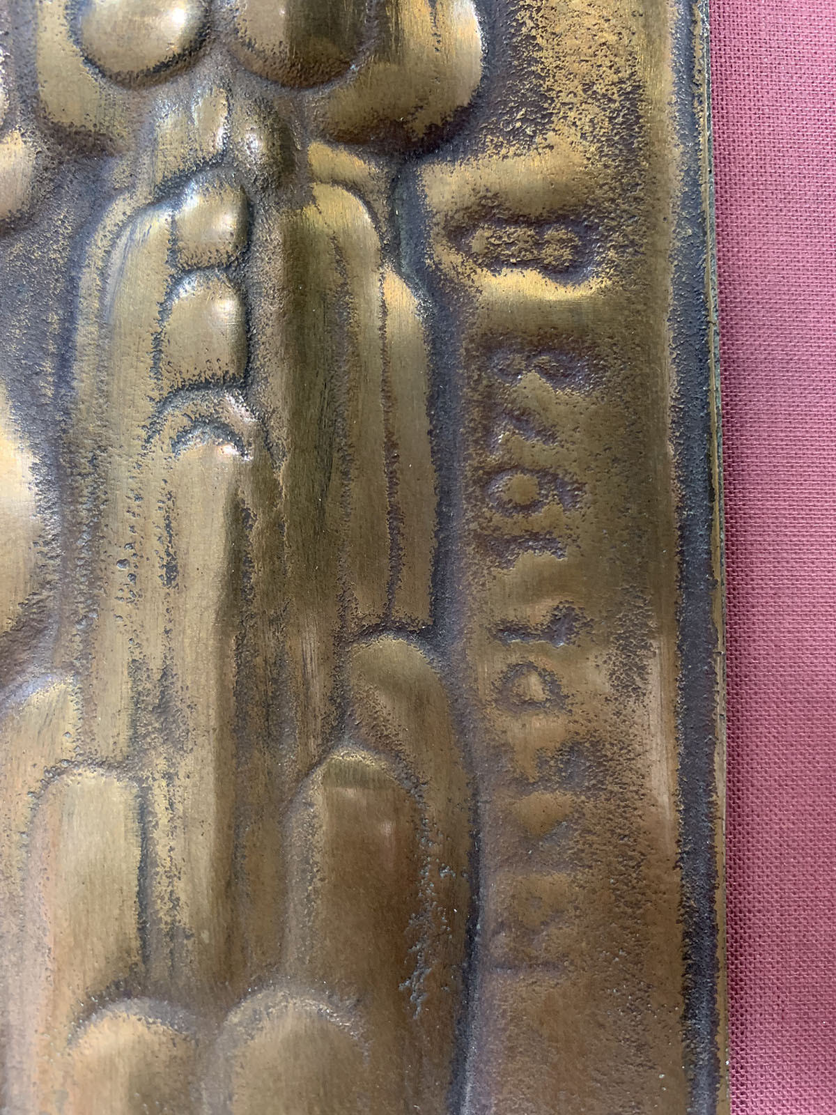 Umschlag Treibarbeit in Kupfer, vergoldet, Leinen auf handgeschöpftes Papier