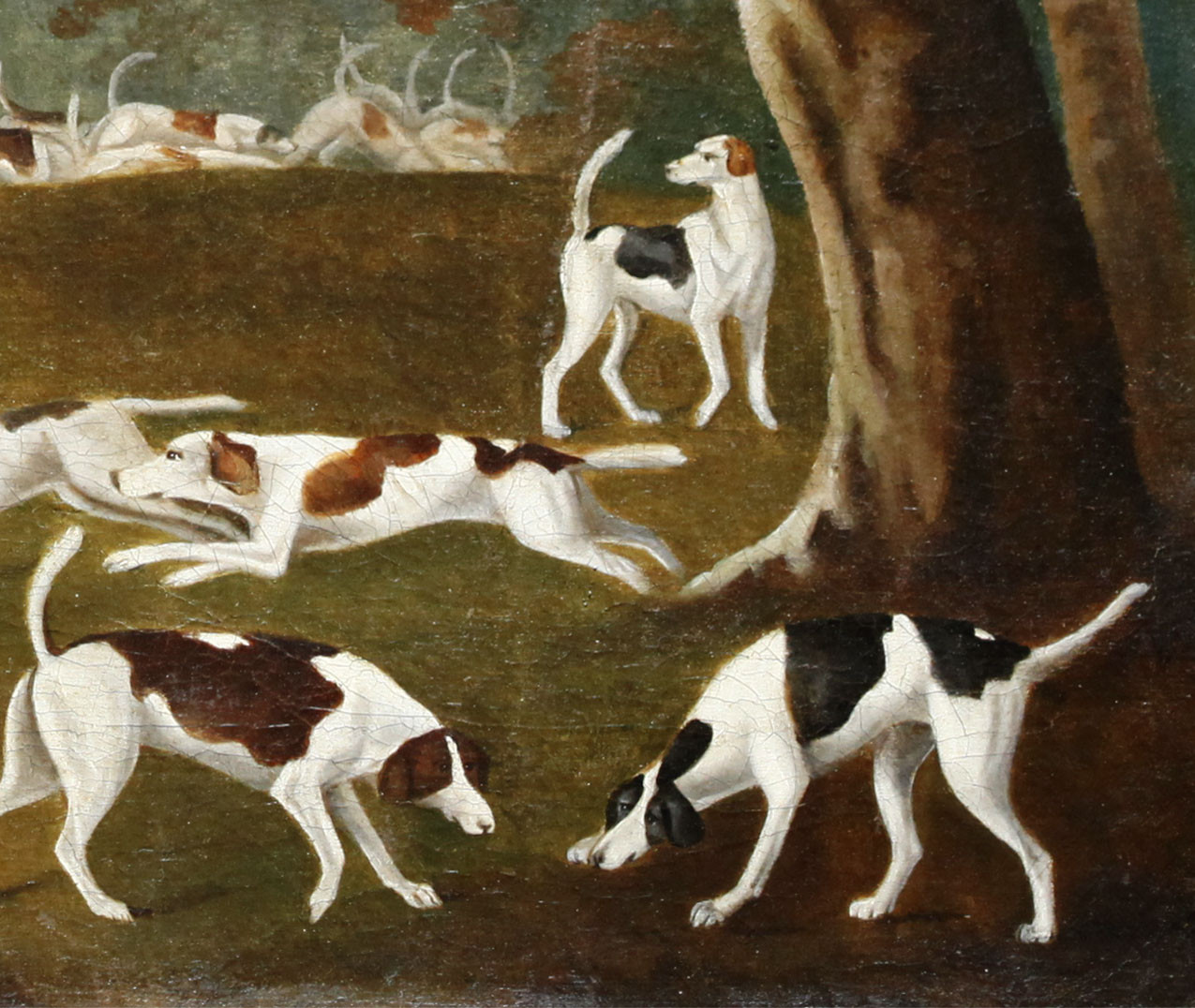 - Verso: Etikett: Österreich-Haus Pal. Palffy/Gem:Reiter mit Rüden/Inv Nr. 1501, Öl/Lwd. 71 x 91 cm/Eing. 11.3.64