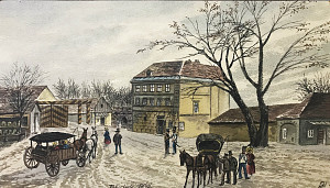 Maximilian Hermann Neubauer, topographer and painter. * Vienna, February 8, 1879; † Vienna, November 2, 1920. Studied at A. Schäffer's painting school (1896) and worked as a draftsman and watercolorist for postcards publishers and newspapers as well as for art shops, etc. Neubauer preferred subjects of Viennese cityscapes and events from the history of the city of Vienna. As a painter, the value of Neubauer's work lies in the naively faithful reproduction of topographic conditions that are otherwise not documented. The graphic collection of the Historical Museum of the City of Vienna owns numerous of his works