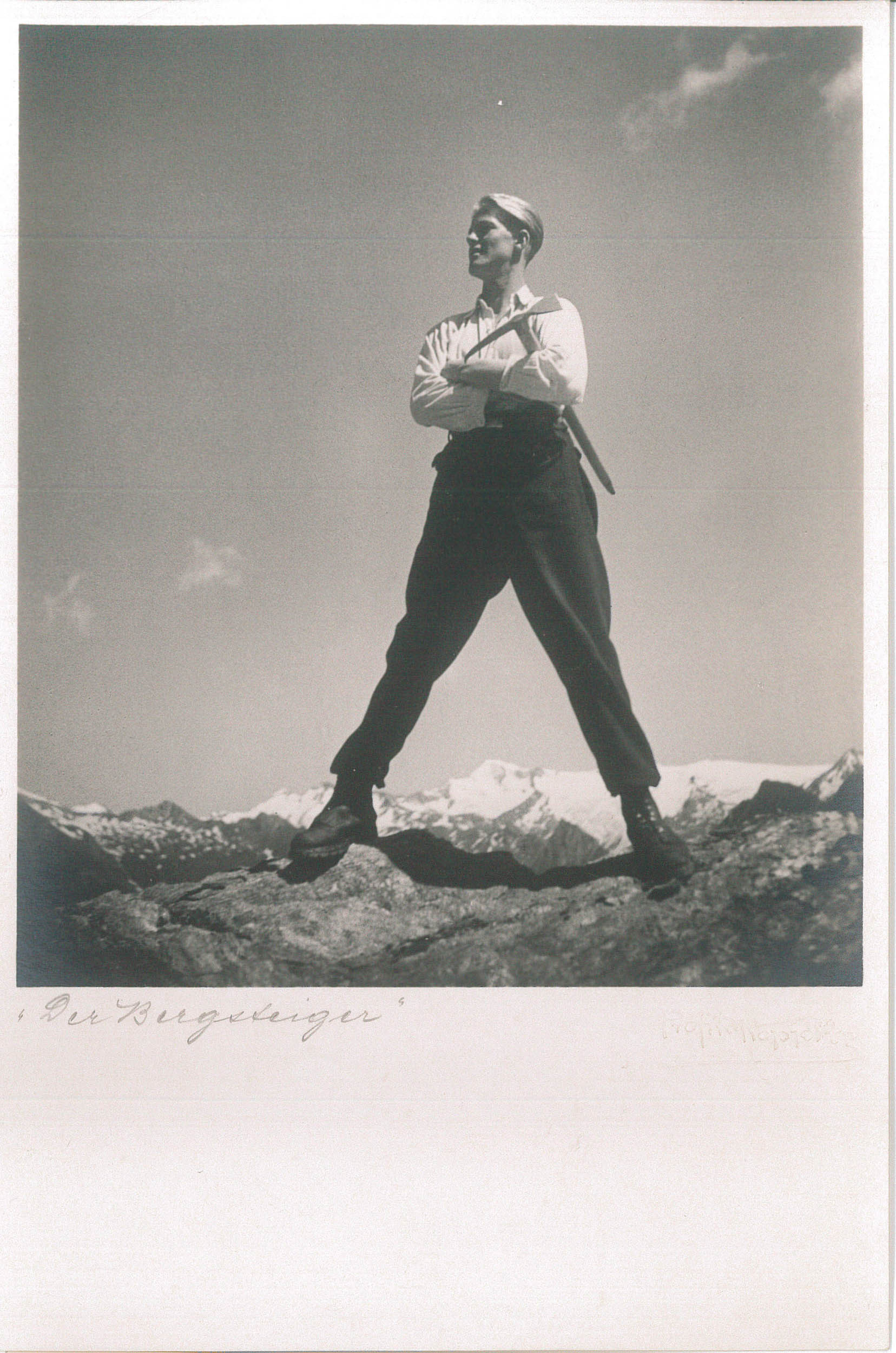 • betitelt (mit Bleistift): "Der Bergsteiger"; Fotografenprägestempel: "Prof. R. Koppitz"