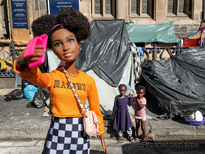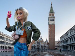 Die konzeptuelle Fotografin Kathrin Hoyos macht Barbie zur Protagonistin ihrer Fotoserie #me, in der sie diesen Zusammenhang der jüngeren Lifestyle-Standards, der Konsumkultur und der Medienbedingungen der paradoxen Social Media Individualität anschaulich macht. So lebendig sie nach Jahrzehnten der Präsenz für uns wirken mag, so bleibt Barbie doch eine Puppe mit vorgeformtem Lächeln, aus Kunststoff und mit steifen Gliedern, die genau weiß: wer heute neidvolle Blicke auf sich ziehen will, kann nicht mehr allein mit Cabrio, Markenaccessoires und langen Beinen im Minirock punkten. Als echtes Jet-Set-Girl sammelt Barbie heute - sei es in Kapstadt, Monte Carlo, Paris, Venedig oder Wien - mit ausgestrecktem Arm in Selfie - Pose Likes und Follower. Die instagramisierten Top-Sights des Globus, die Experiences und Events unseres aufregenden Lebens, sind die Lifestyle-Währung der Gegenwart. Durch Barbie als Darstellungsmittel gelingt der in Südafrika und Monaco lebenden Künstlerin eine durchaus unangenehme Reminiszenz an die mechanische Bereitwilligkeit, mit der wir uns den Prinzipien der Selbstinszenierung unterwerfen und eine Mahnung an die Bestechlichkeit unserer Sinne durch die Darstellung von scheinbar einmaligen Traumstränden, Wahrzeichen, Bergblicken und Begegnungen, für die wir in Wirklichkeit massenhaft und schamlos Schlange stehen müssen.
