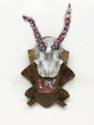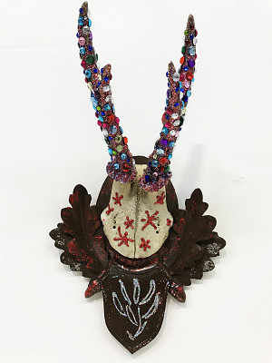 Susanne Riegelnik Trophy 47 mixed media, diamond dust, glass crystals on hunting trophy 41 cm € 350.-