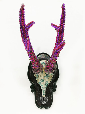 Susanne Riegelnik Trophy 30 Mixed media, diamond dust, glass crystals on hunting trophy 32.5 cm € 330.-
