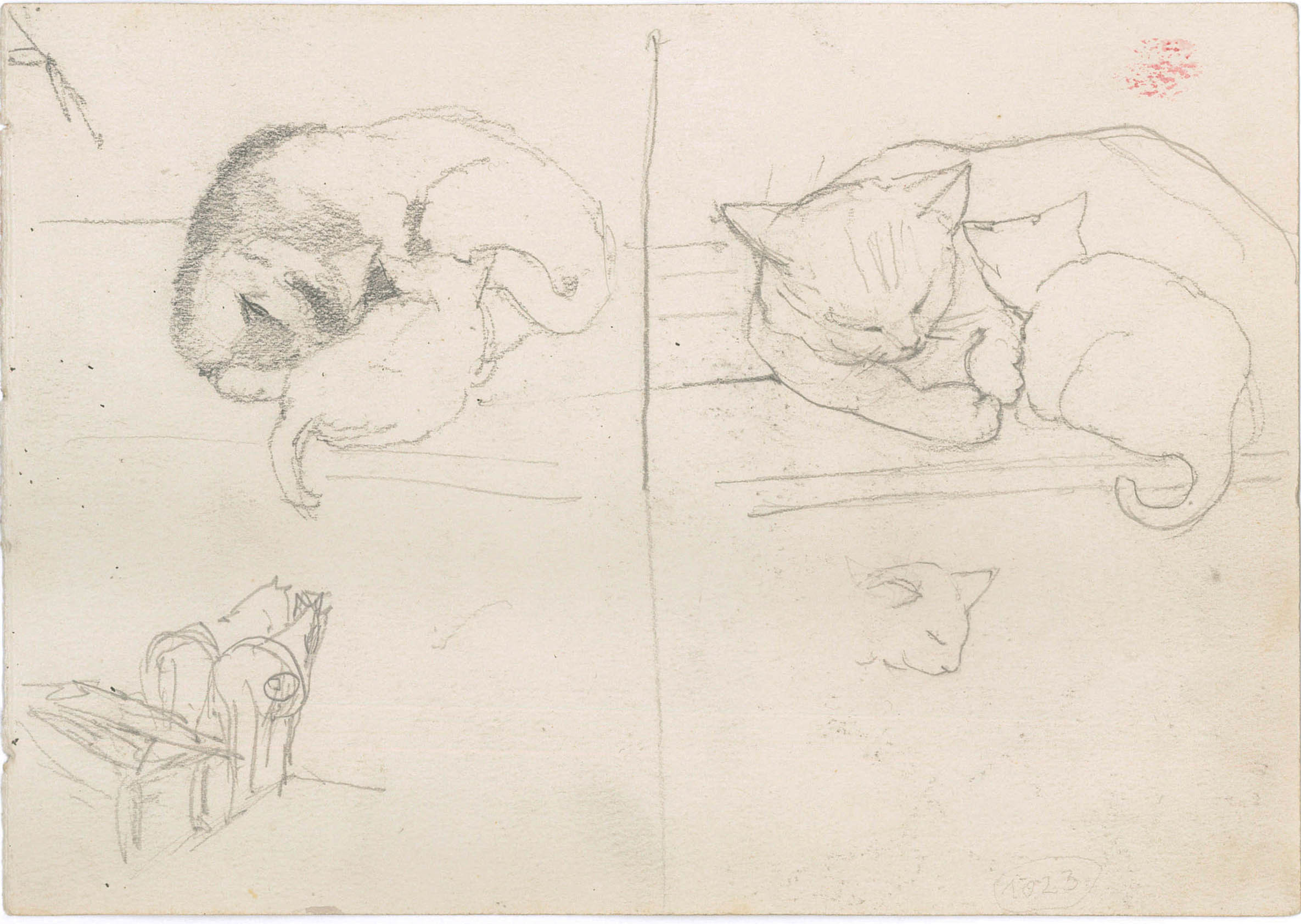 Landscape sketch, verso cats sketch