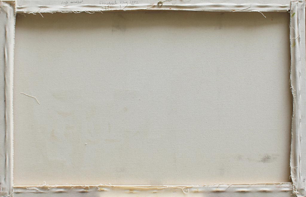- Verso: signiert und datiert: "Friedrich Klug 2002" und betitelt: "Luft anhalten"