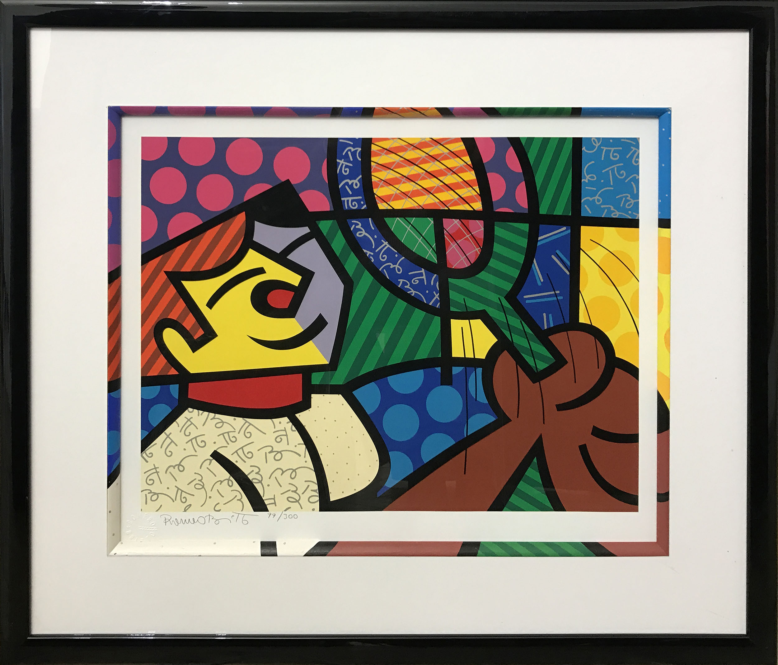 - jedes signiert und nummeriert: "Romero Britto 99/300"