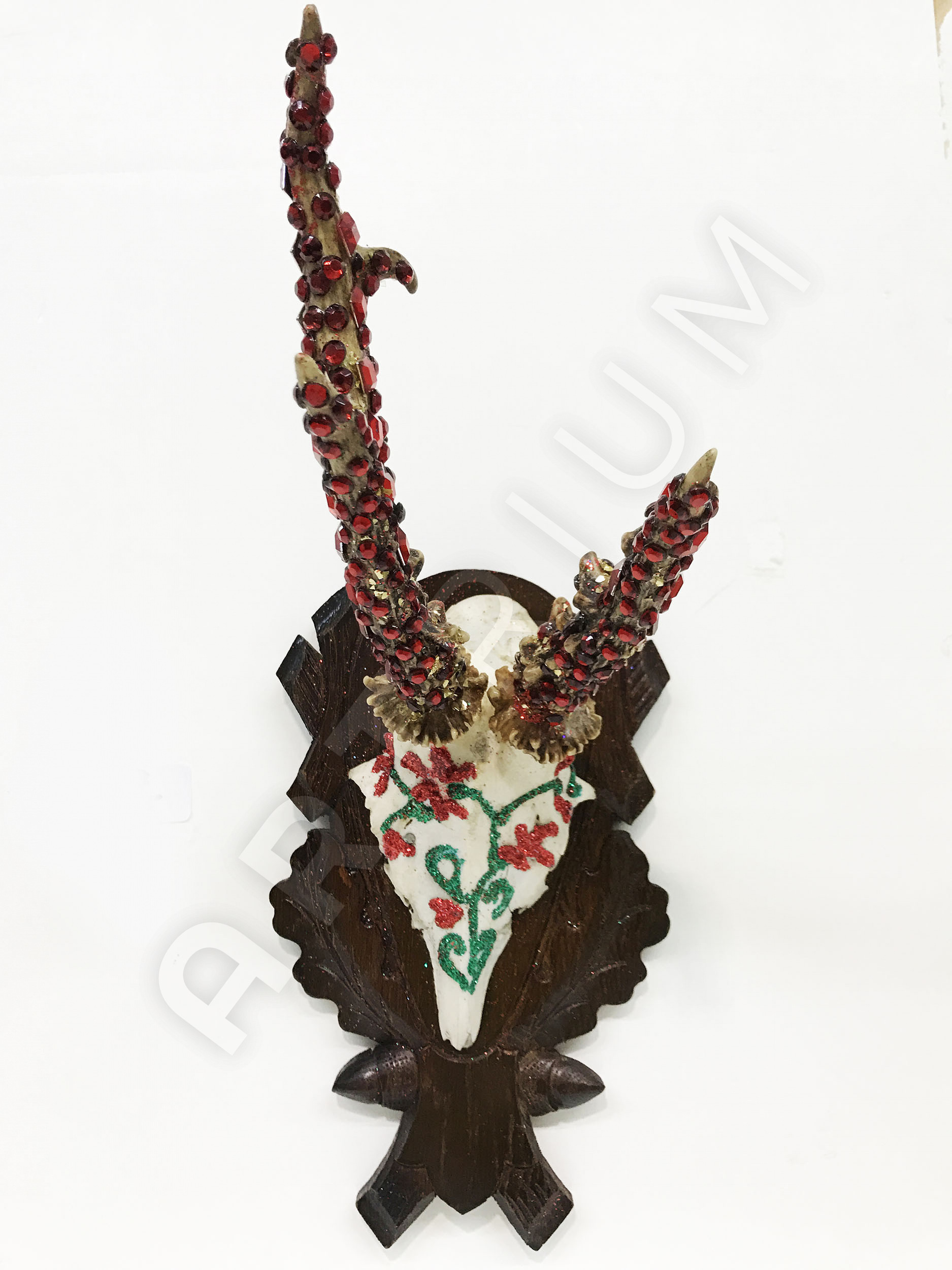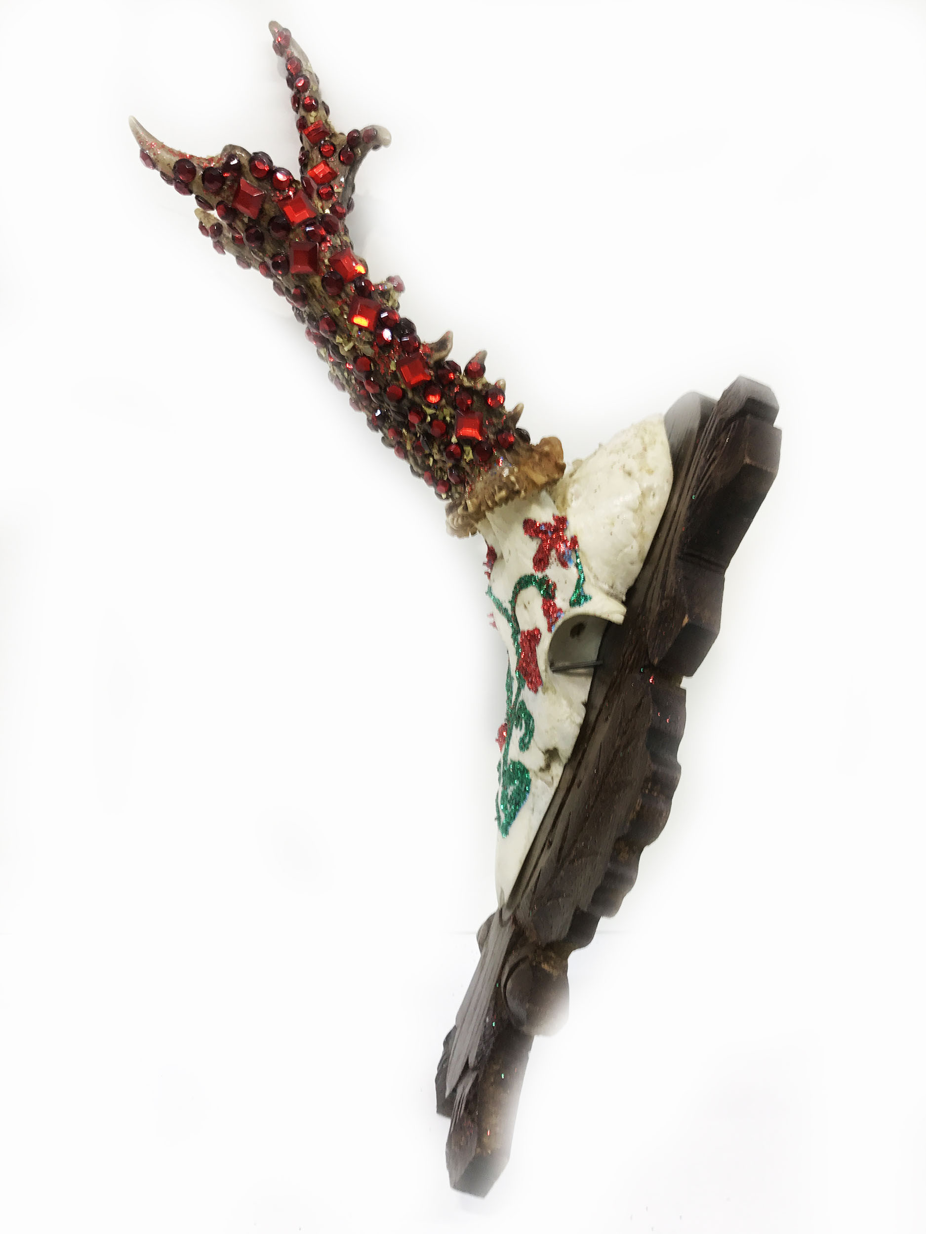 Mischtechnik, Diamantstaub, Glaskristalle auf Jagdtrophäe