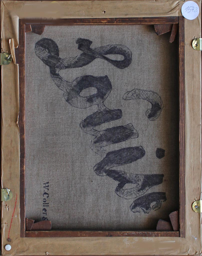 • verso auf der Doublierung der Namenszug "Louise", möglicherweise der Vorname der Malerin, sowie der Stempel des Leinwandherstellers,vermutlich übertragen von der originalen Leinwand