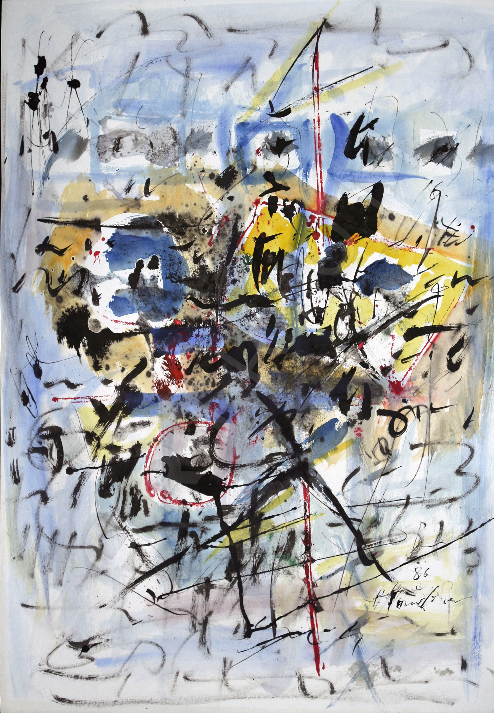 Hans Staudacher zählt zu den Hauptvertretern des abstrakten Expressionismus in Österreich. In einzigartiger Synthese von Geschriebenem, Zeichenhaftem und farbigem Umfeld kreiert er seine Malerei in vielschichtigen, poetischen Bildebenen, in denen Spontaneität, Dynamik und Treffsicherheit der malerischen Geste eine subjektive, ephemere Momentaufnahme der künstlerischen Existenz vermitteln.