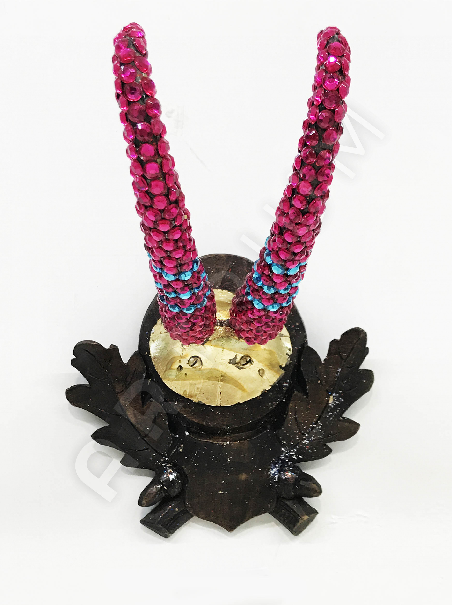 Mischtechnik, Diamantstaub, Glaskristalle auf Jagdtrophäe