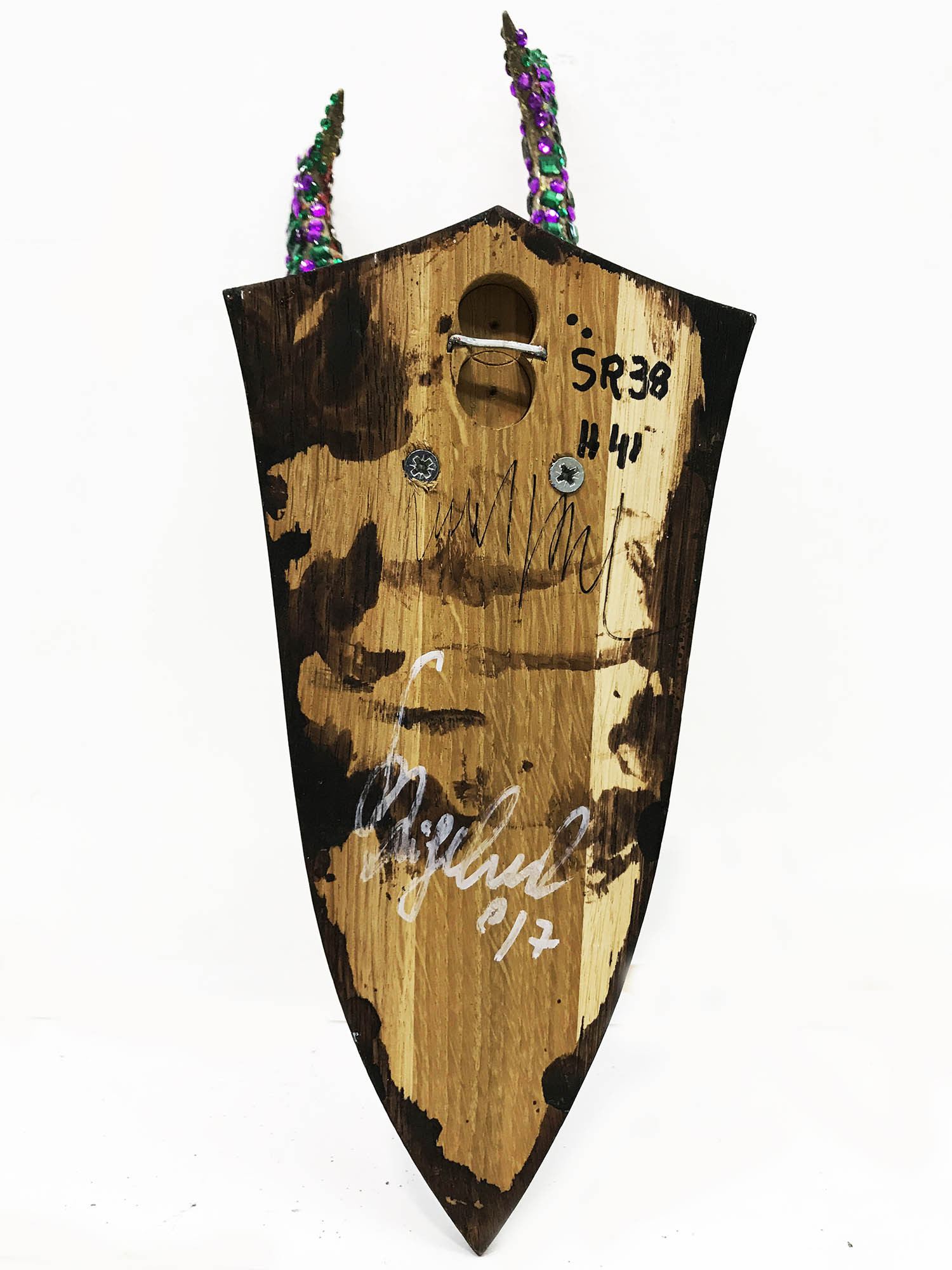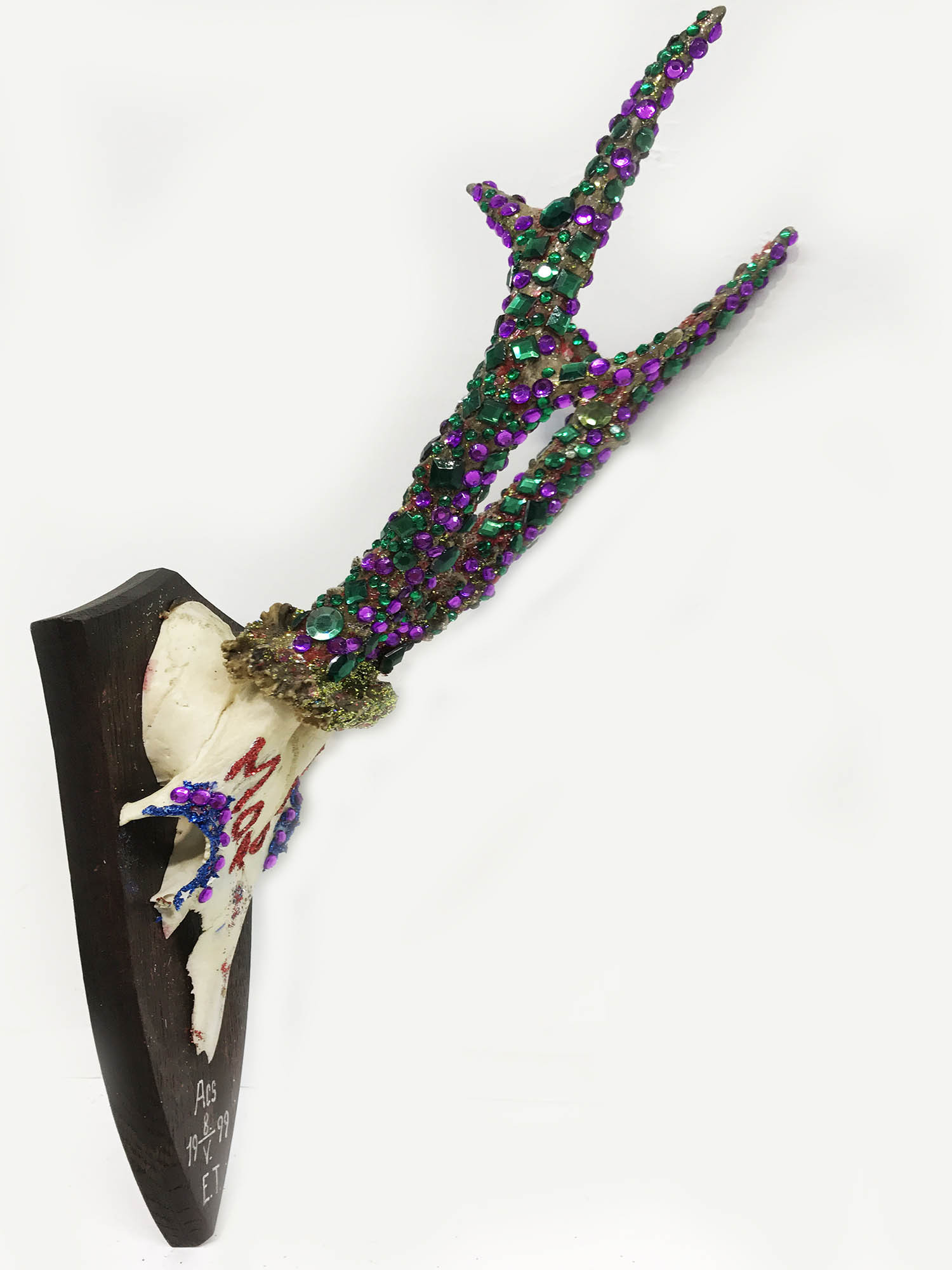 Mischtechnik, Diamantstaub, Glaskristalle auf Jagdtrophäe