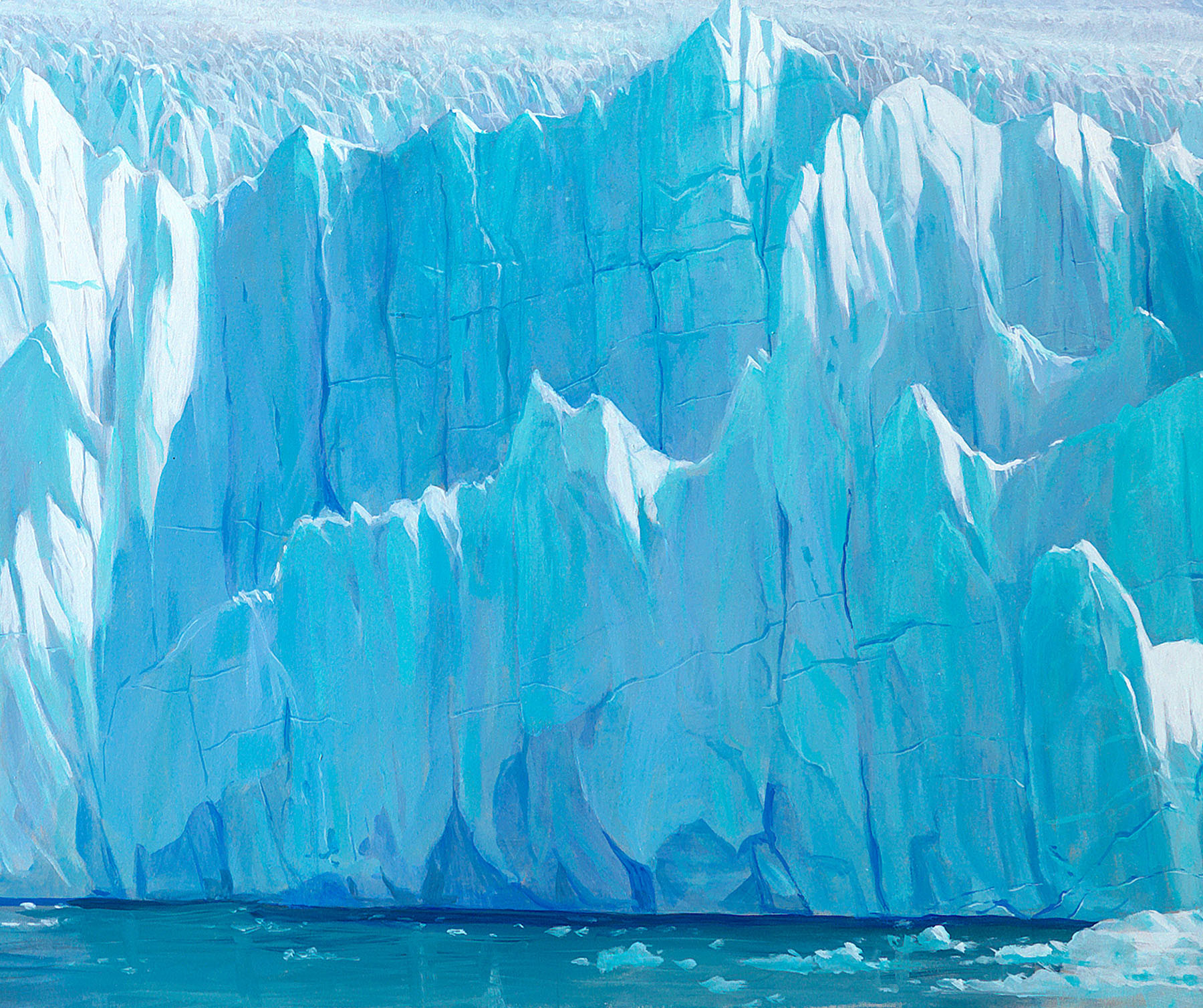 - Der Künstler hat mit diesem Motiv den Zustand des berühmten Gletschers festgehalten, der durch die Klimaveränderung in absehbarer Zeit ein verändertes Aussehen haben wird