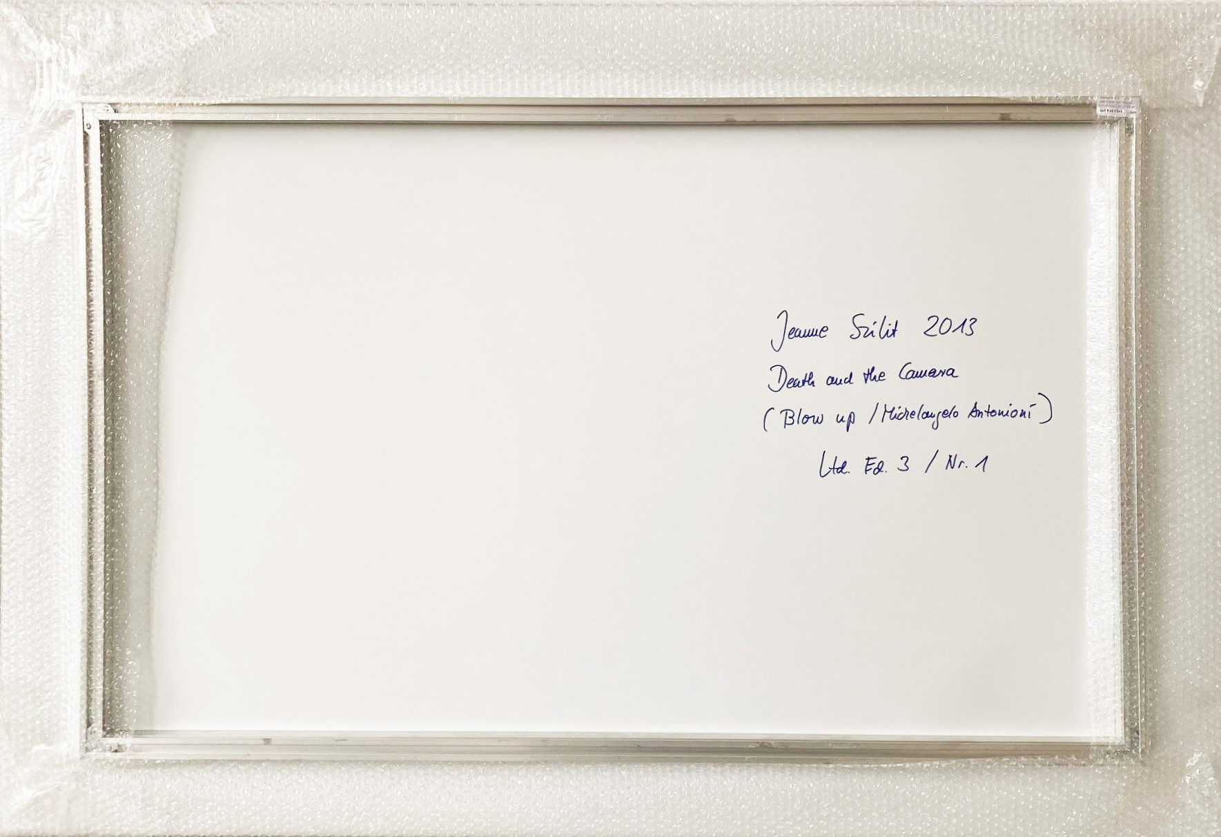 - High Quality chromogenic Print auf Aluminiumplatte unter Plexiglas. Limited Edition 3 + 2 AP / AP 1. Das Motiv stammt aus der Einzelausstellung "Jeanne Szilit - PLOT POINTS", die in der Galerie Suppan Fine Arts 2012 stattfand. Bei der Serie handelt es sich um hochkomplexe Bearbeitungen von Jeanne Szilit's Screenshots aus berühmten Filmen. Hier: "BLOW UP" von Michelangelo Antonioni.