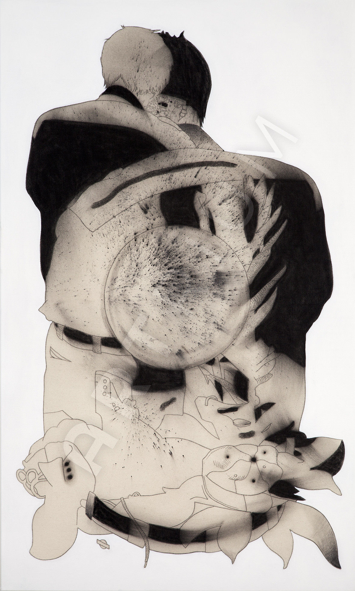 Kohle, Kreide auf Leinwand